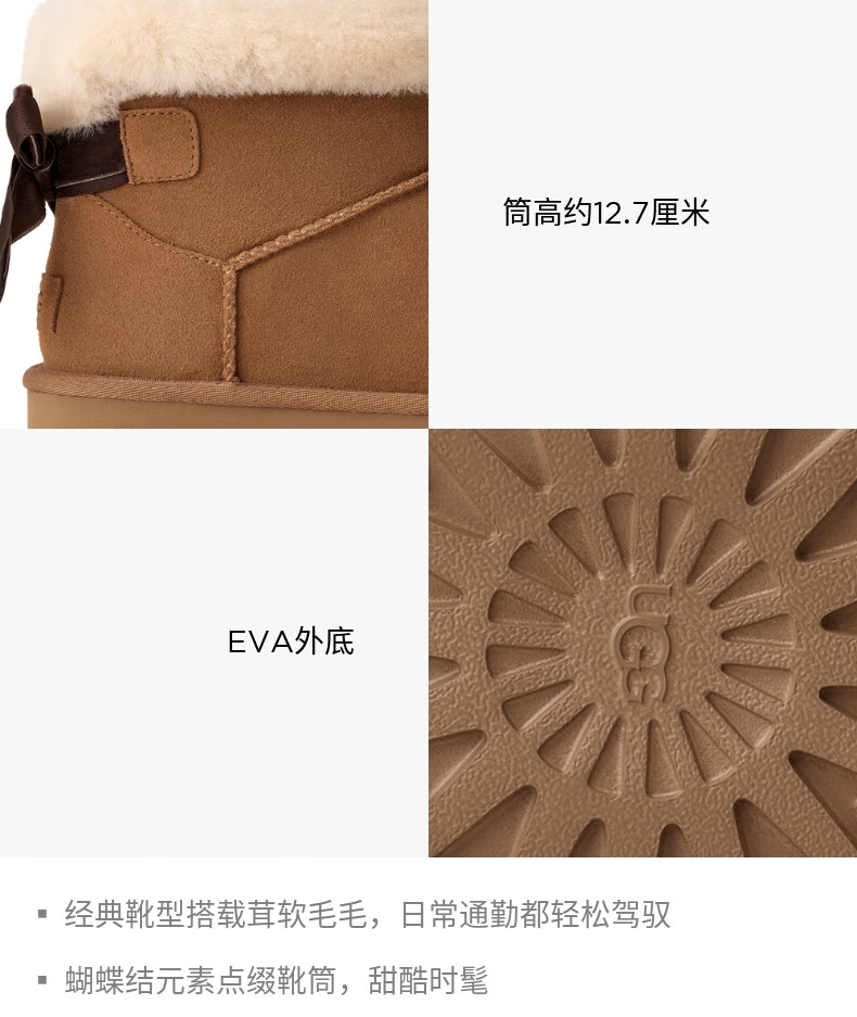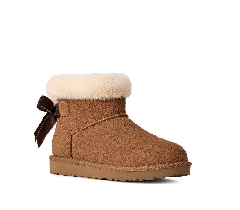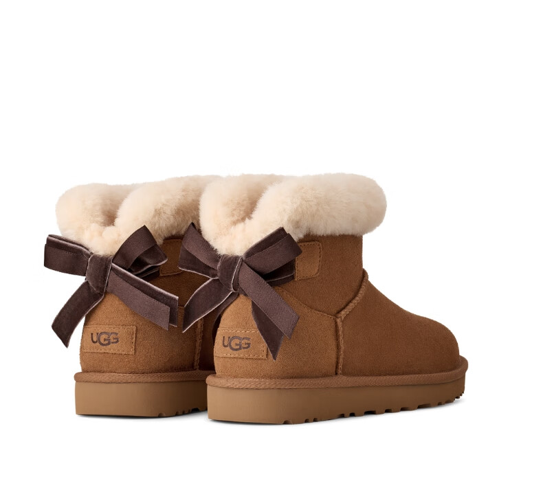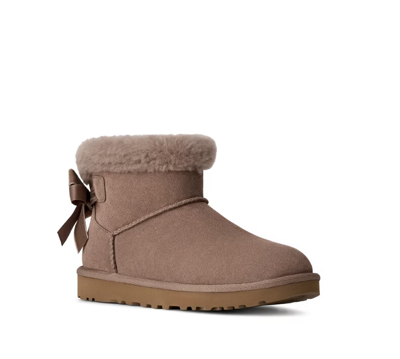 UGG new women's comfortable and fashionable flat solid color bow style mini Bailey short boots snow boots 1178790 CHE | Maroon 38