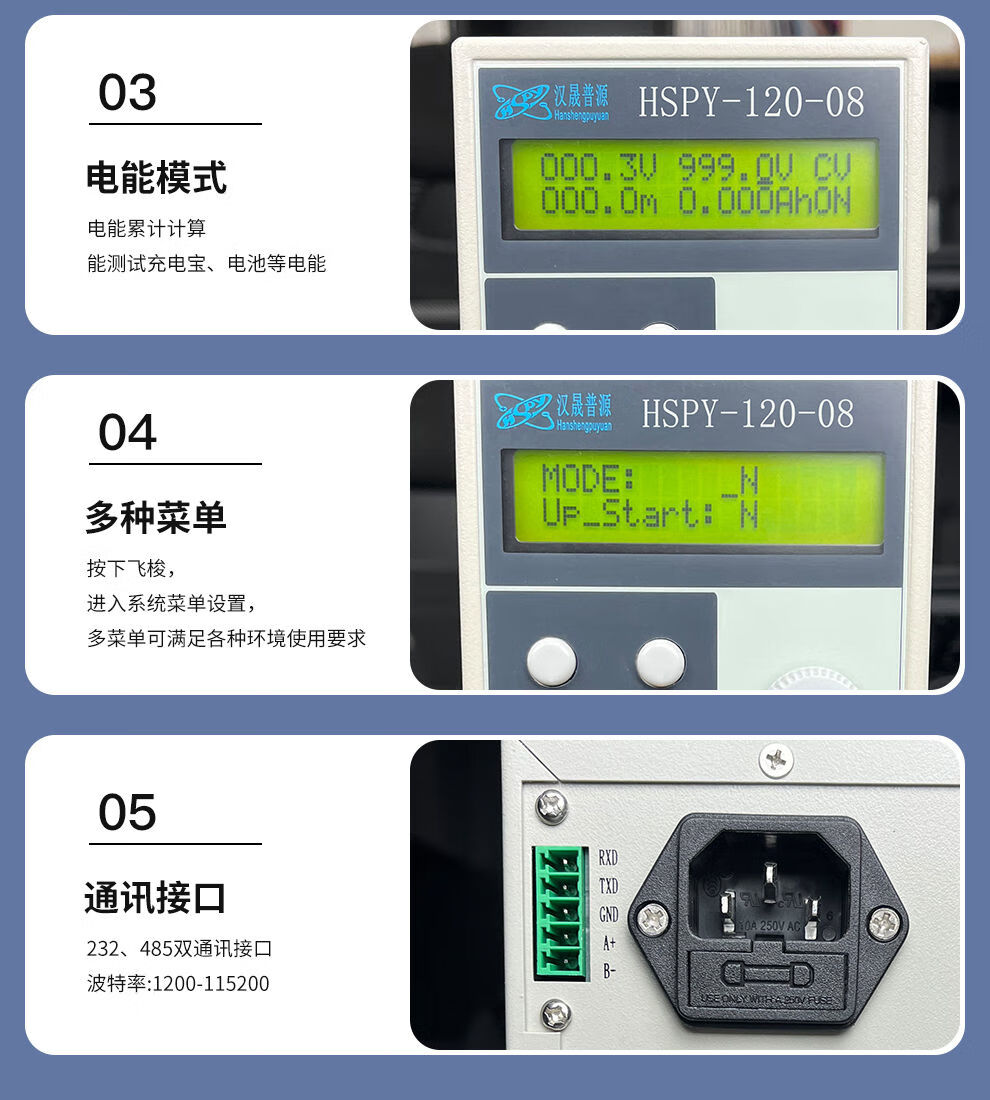 Hansheng Puyuan 120V6A/8A high-precision adjustable DC regulated power supply MODBUS communication protocol constant power 120V6A RS232485 communication