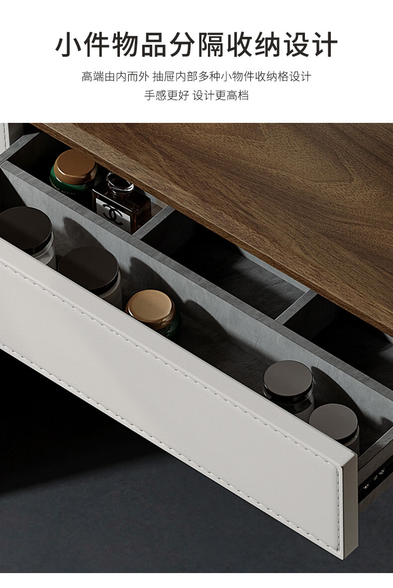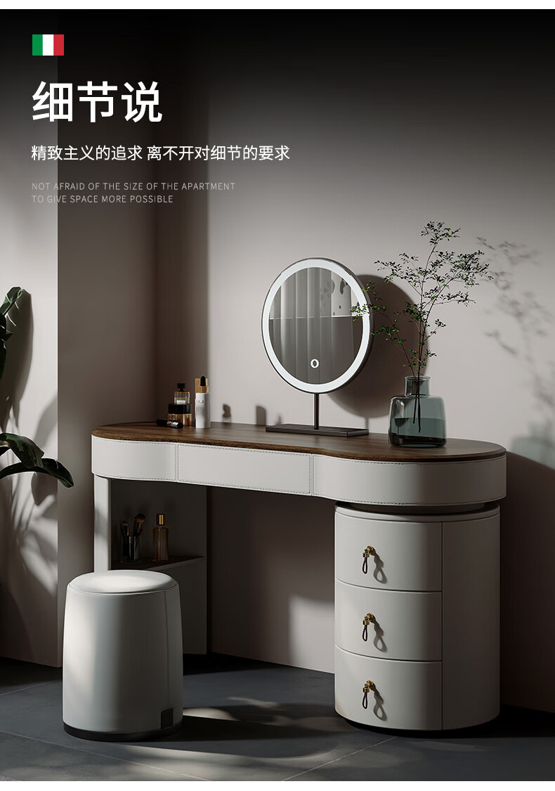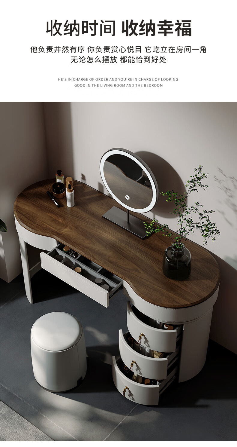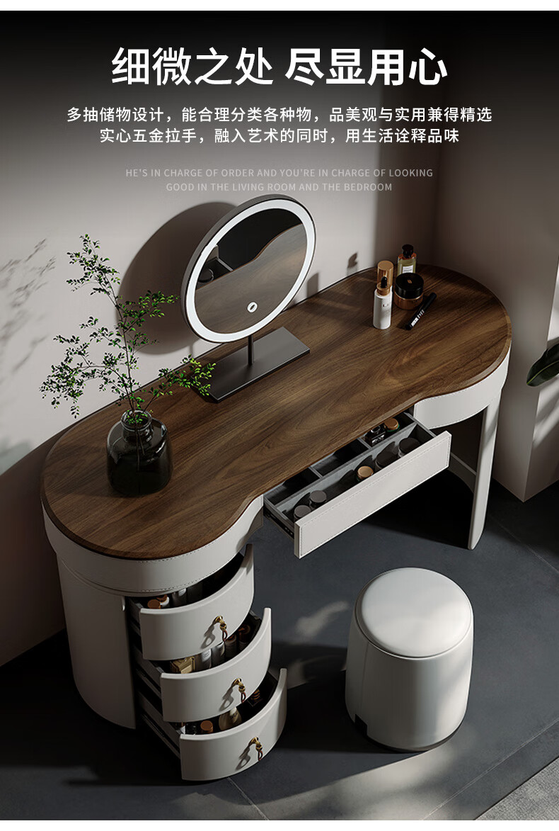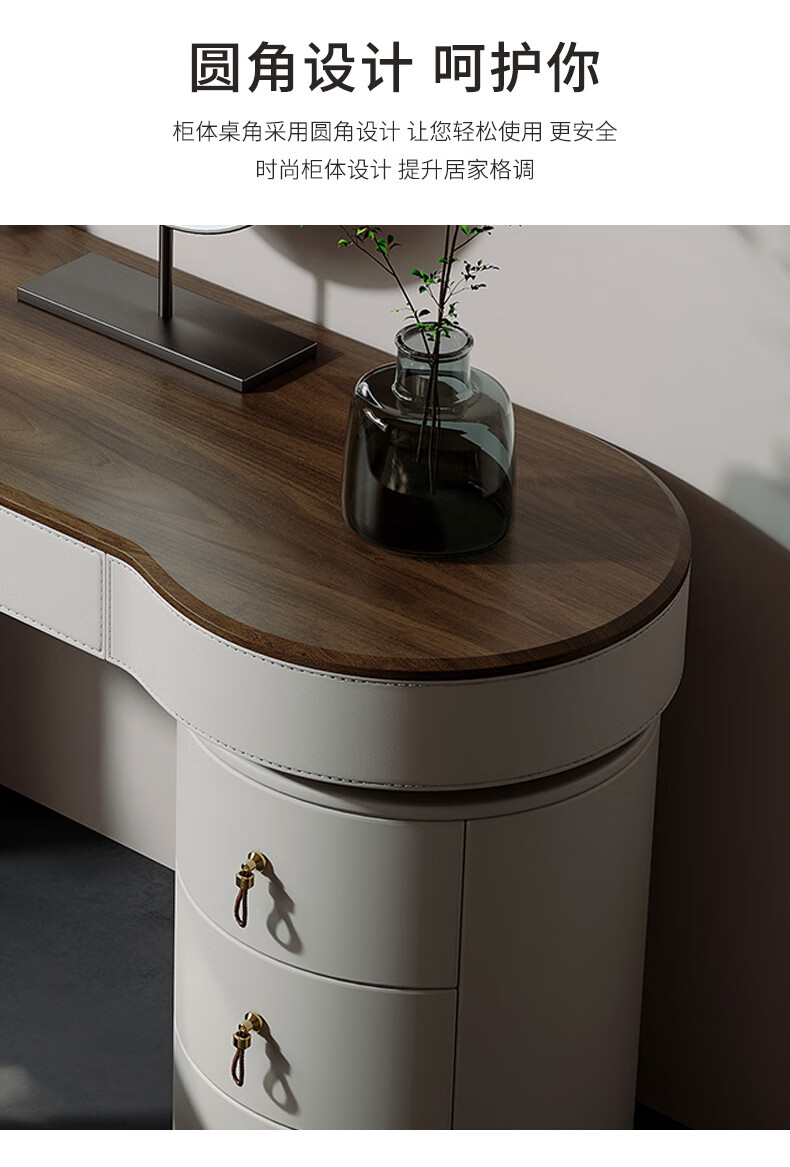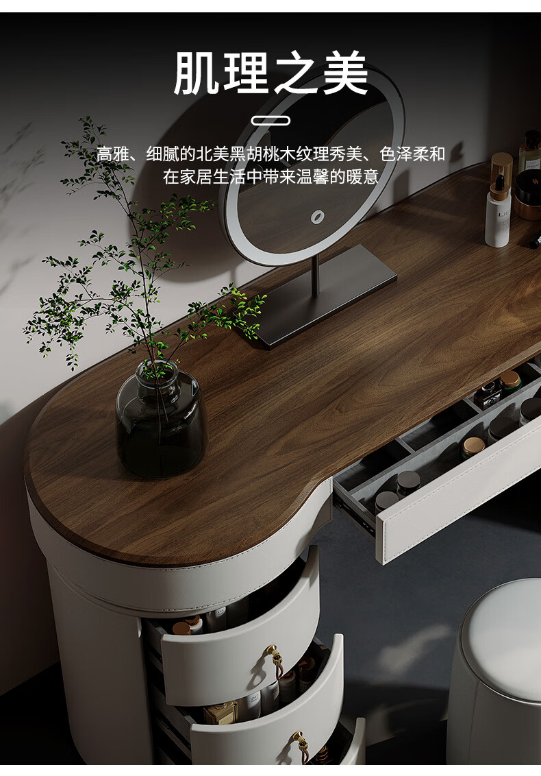 Huichuangyuan high-end French retro black walnut modern minimalist bedroom saddle leather storage and storage dresser makeup table 1.0 meter dresser + makeup stool black walnut veneer only need to install feet