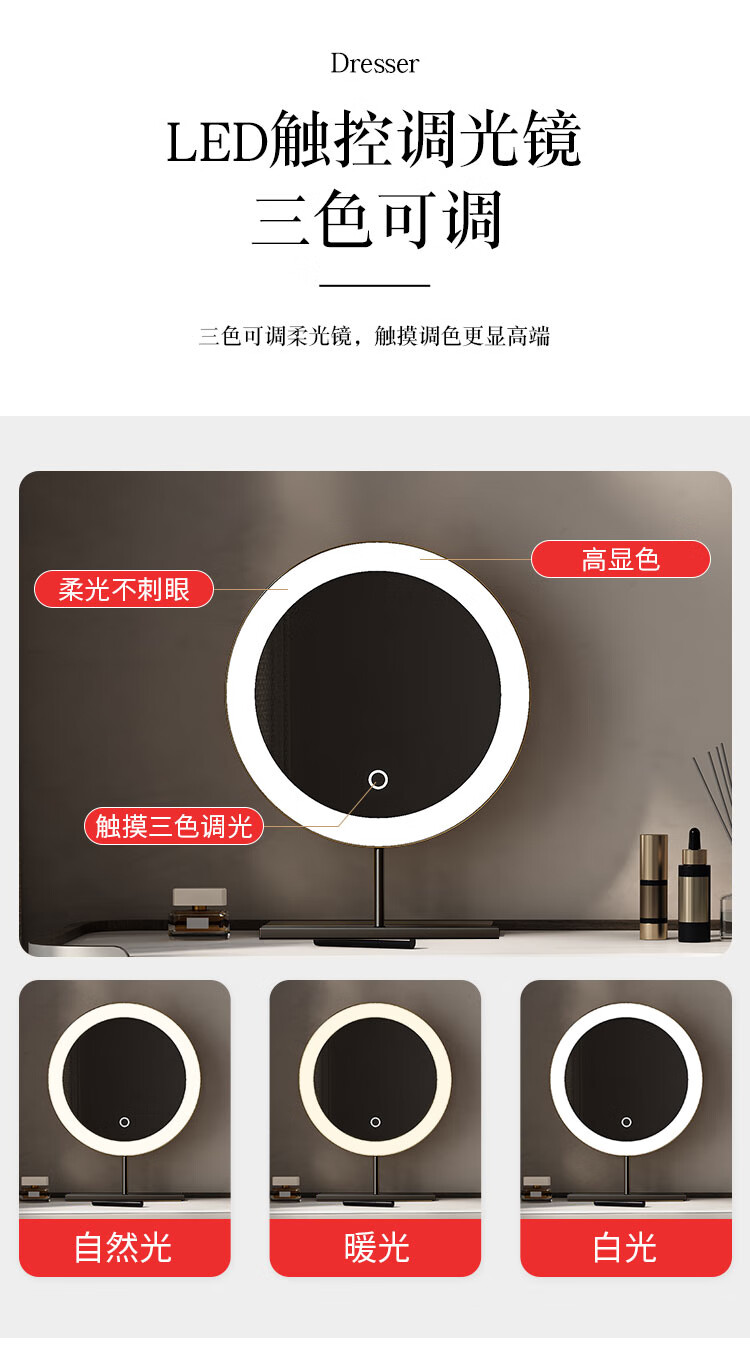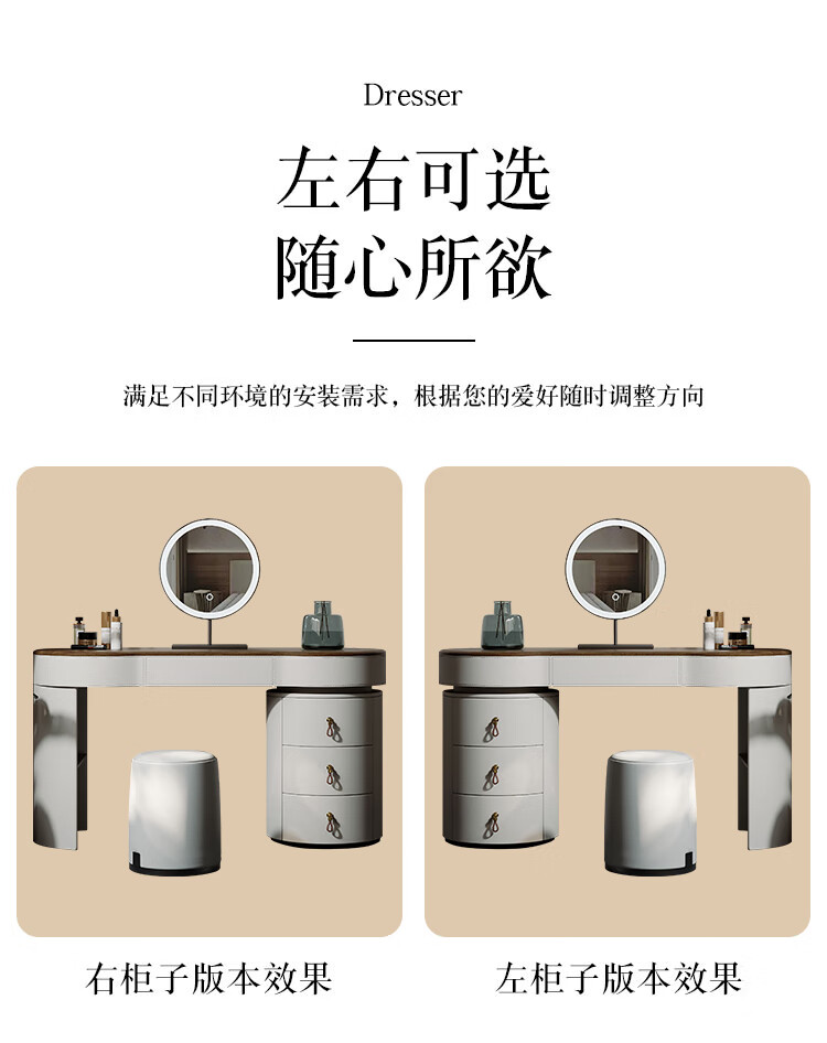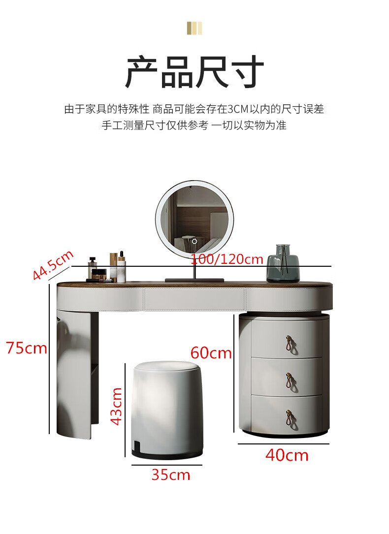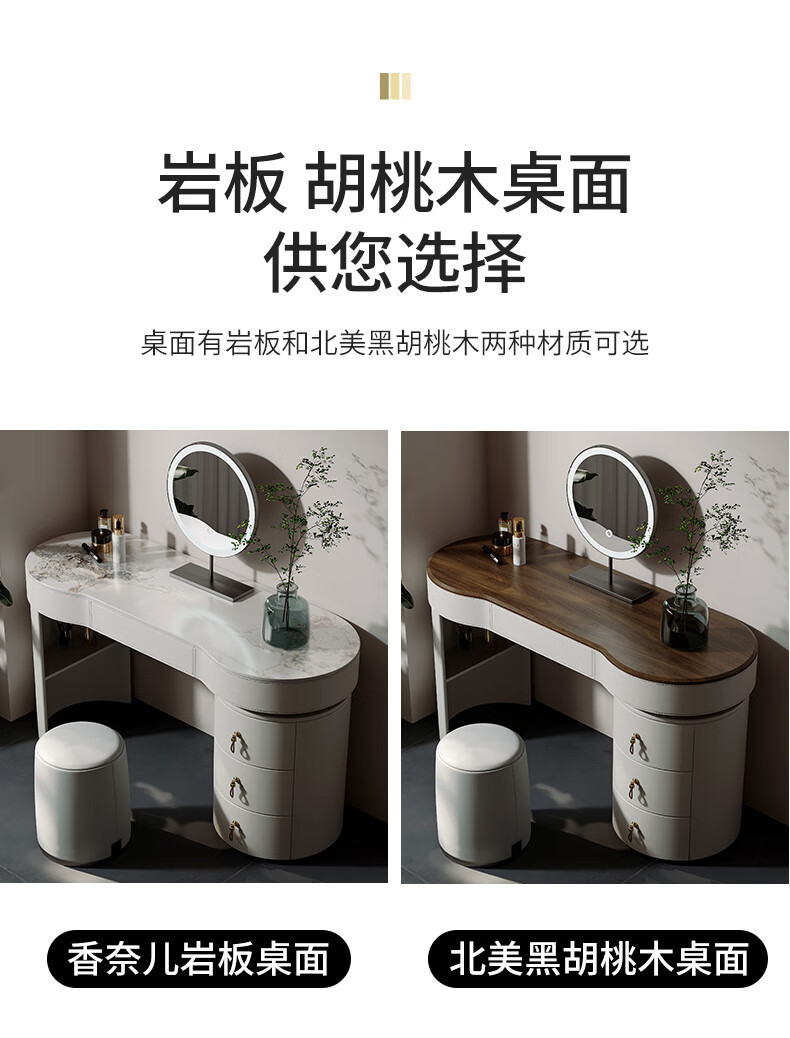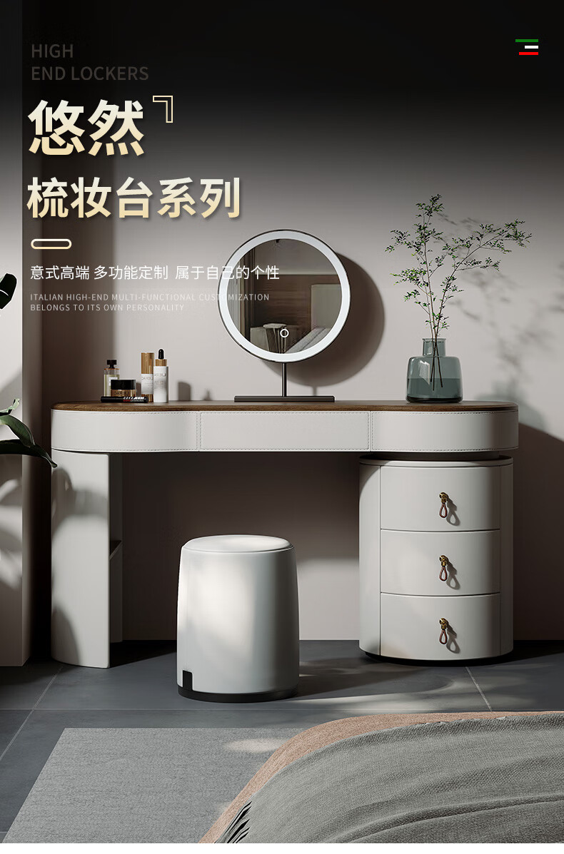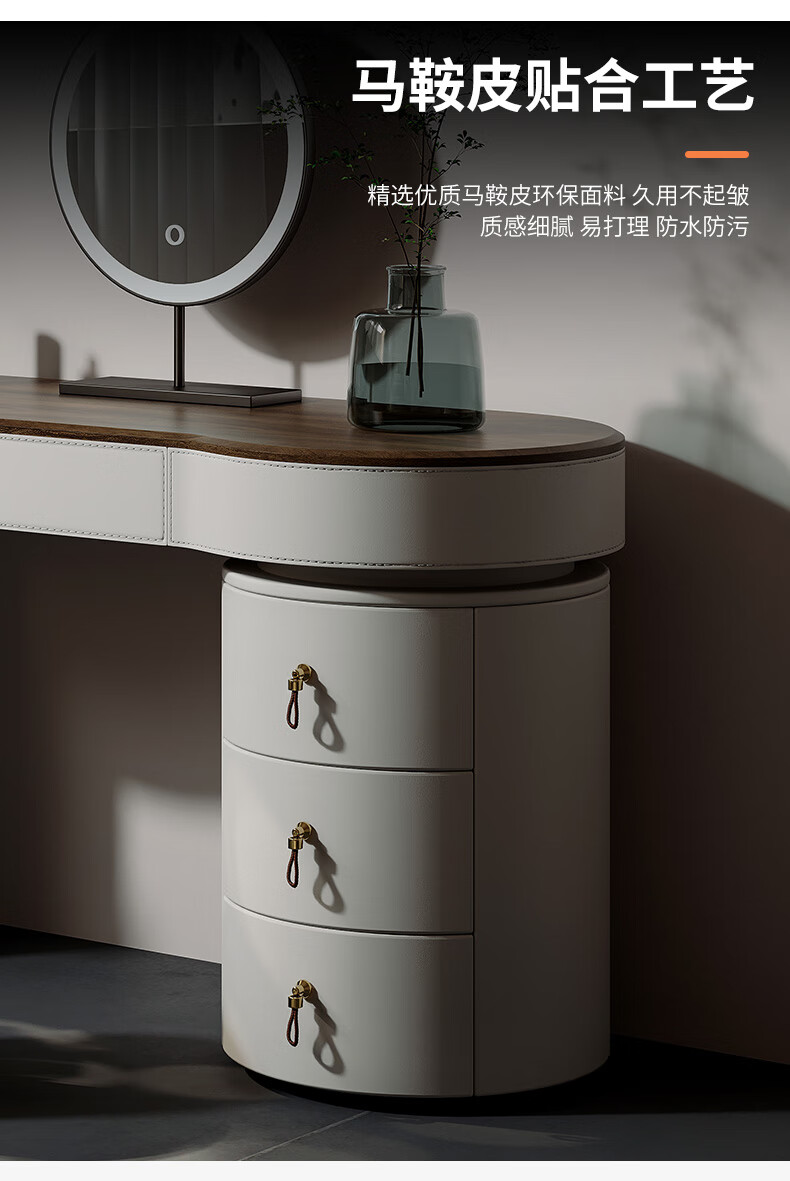 Huichuangyuan high-end French retro black walnut modern minimalist bedroom saddle leather storage and storage dresser makeup table 1.0 meter dresser + makeup stool black walnut veneer only need to install feet