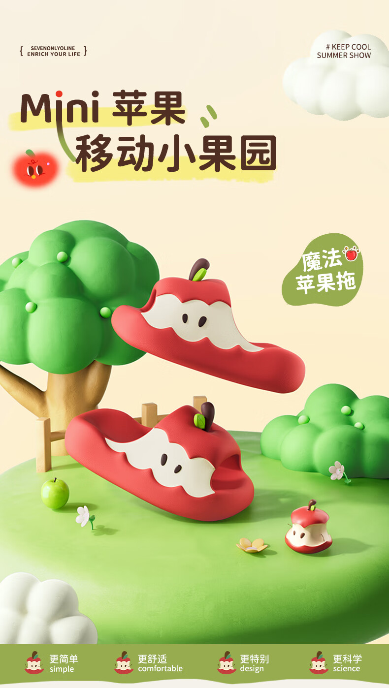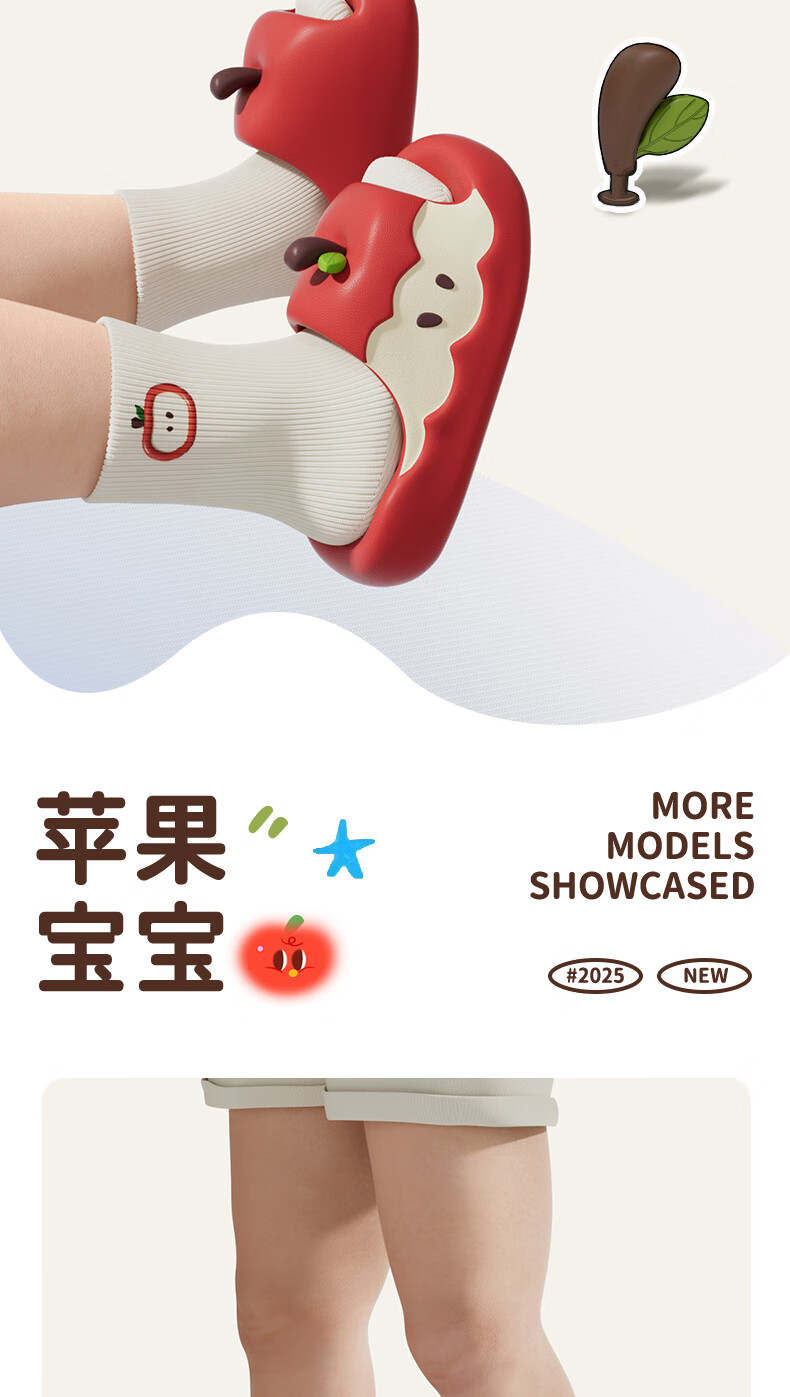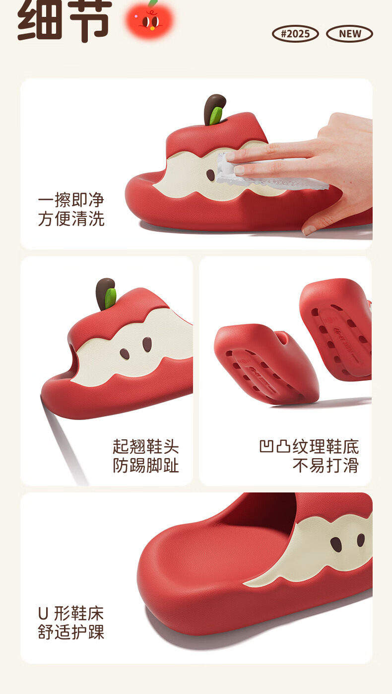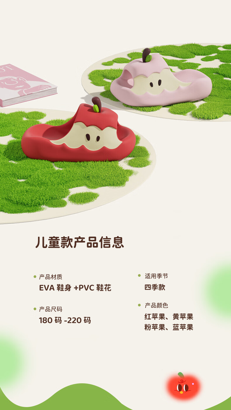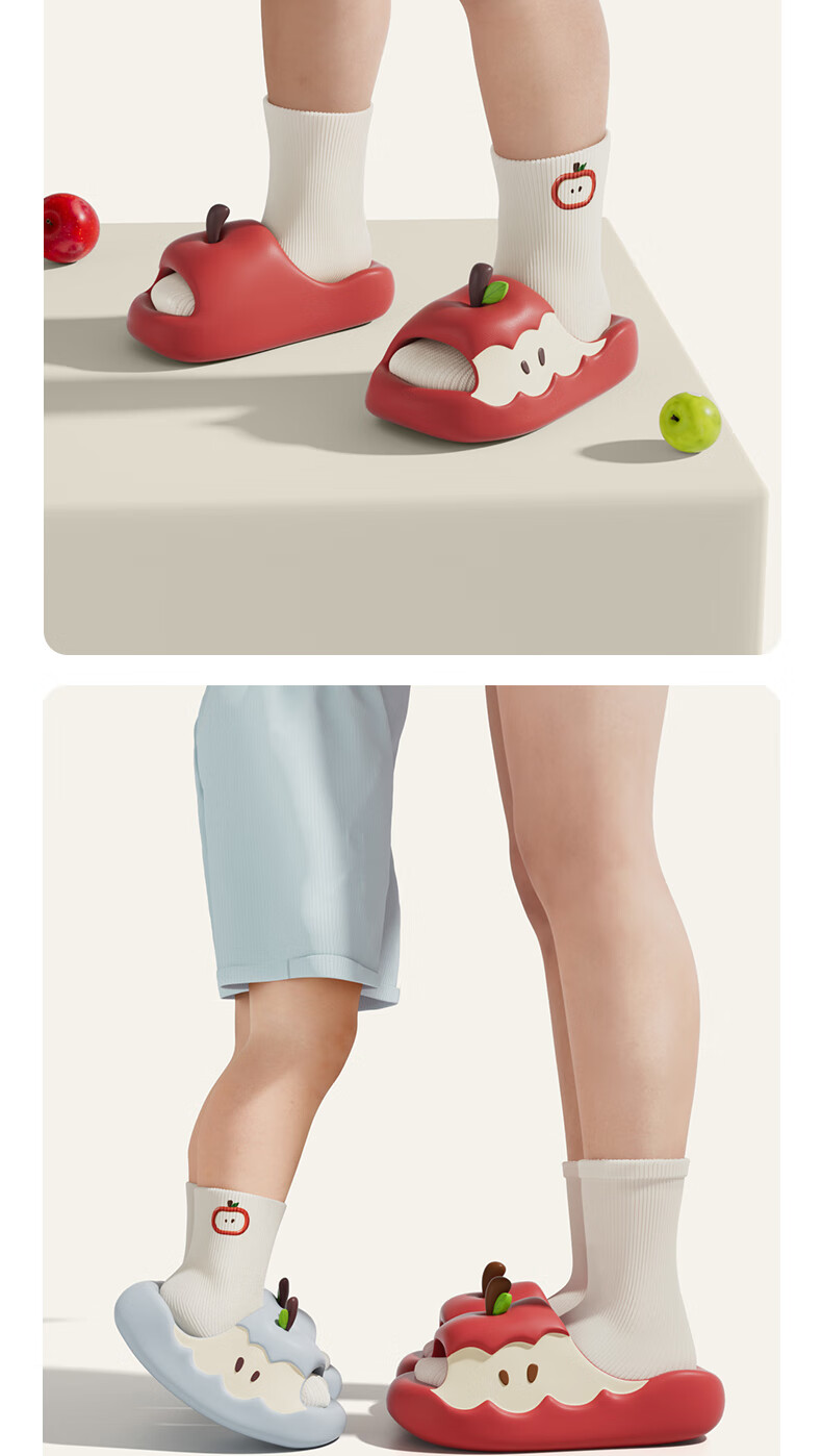 Chedoir Cartoon Apple Children's Slippers for Boys and Girls Summer Parent-Child Antibacterial EVA Anti-Slip Indoor Household Slippers Summer Red Apple 22 cm Inner Length 220 Approximately 34-35 Size Foot Wear