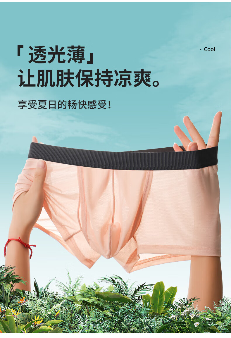 Universal men's nude semi-transparent underwear sexy solid color simple two-sided no-opening no-take-off sexy translucent boxer briefs white white M90-110Jin Jin equals 0.5 kg
