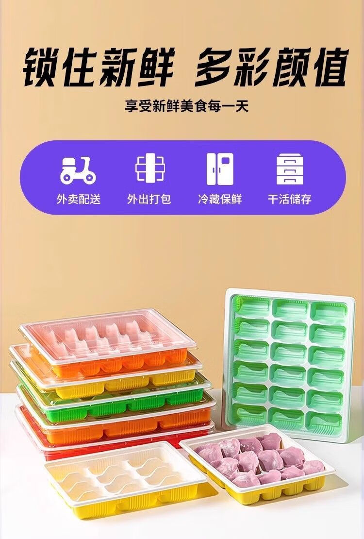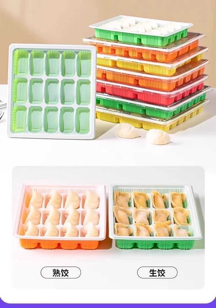 Magic Bean Shenghuo 50 sets, 100 sets disposable dumpling boxes, food-grade plastic dumpling boxes, thickened dumplings fresh take-out boxes, mint green and white, 15 grids, perfect and harmonious, default 50 sets, Shangchao quick-frozen