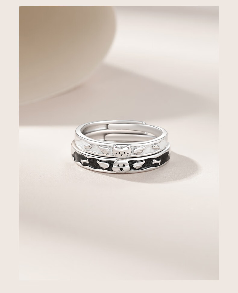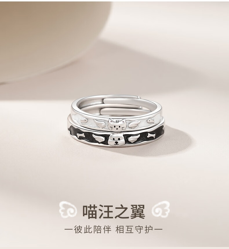 Ostantin Pure Silver S999 Couple Rings, Cat and Dog Cute Opening Rings, Birthday and Valentine’s Day Gifts for Boyfriends and Wifes, Meow Wings Couple Rings - Brand Original Gift Box, One Pair for Couples, Can Be Separated in Different Places