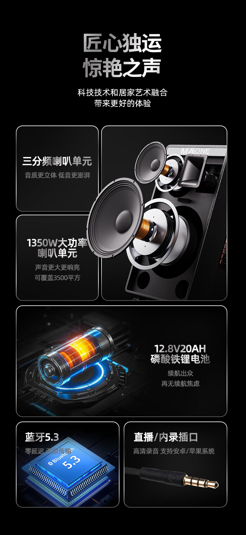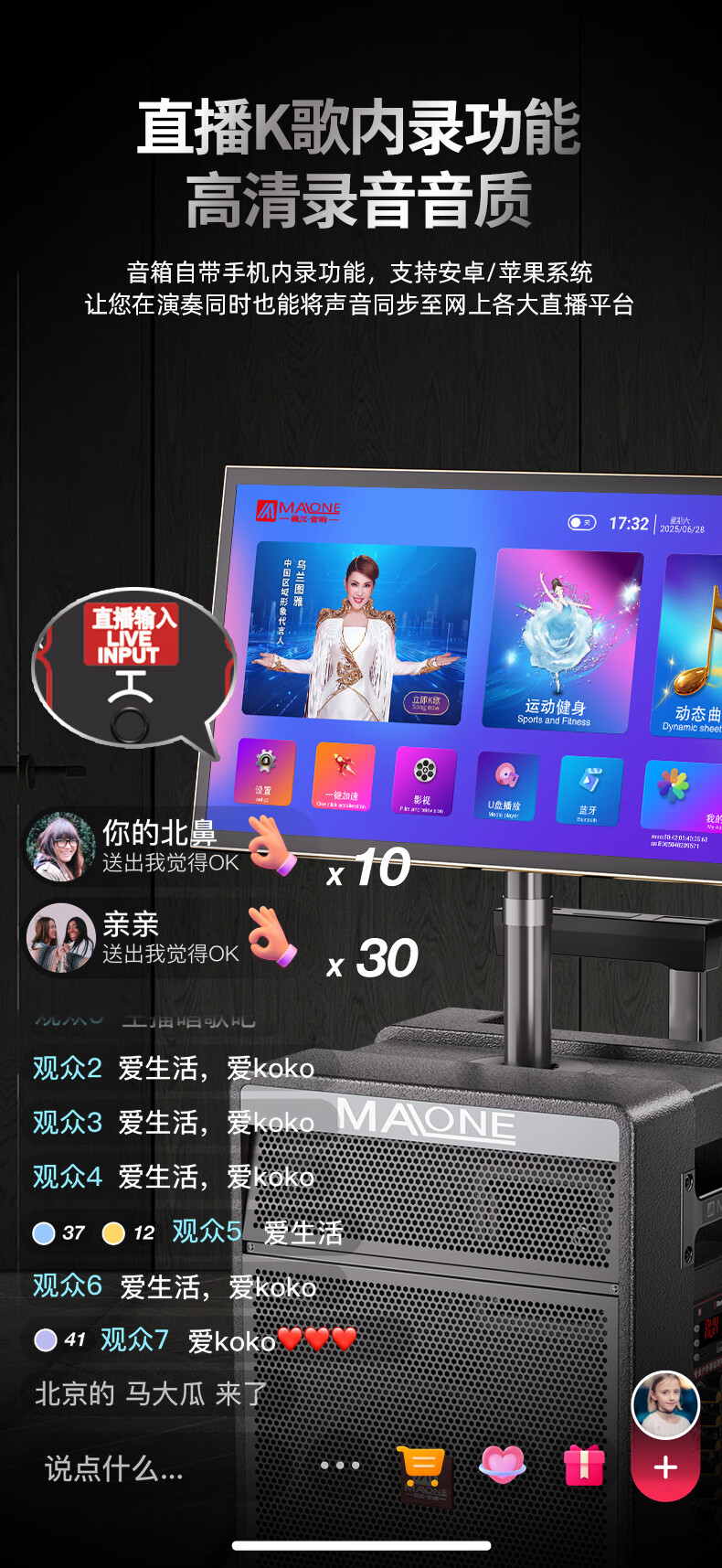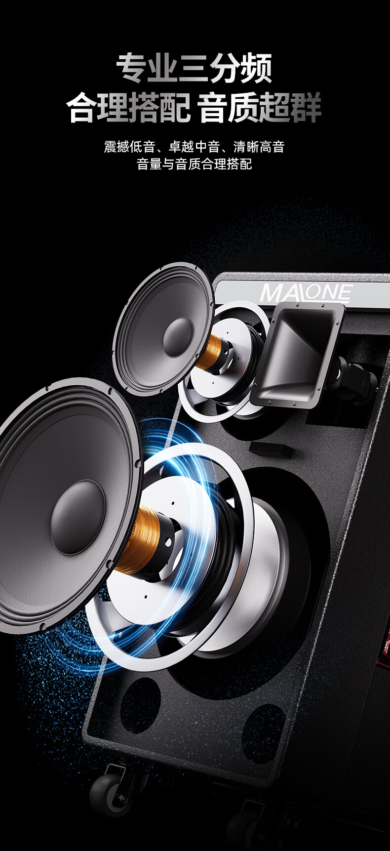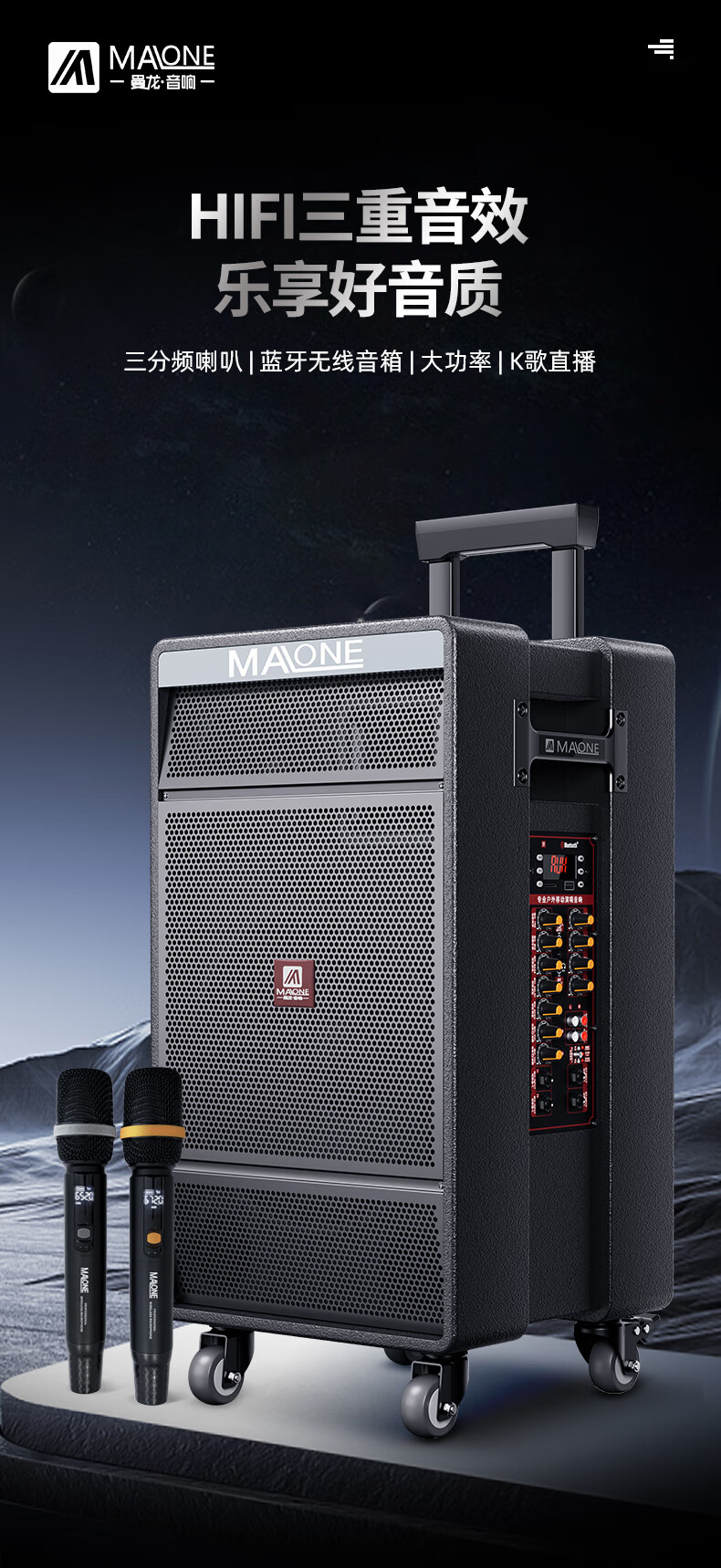 MALONE K-312 new outdoor audio high-power subwoofer square dance singing karaoke with live sound card wireless microphone Bluetooth portable trolley speaker K-312 inch subwoofer + 1 microphone 1 headset + gift flagship version