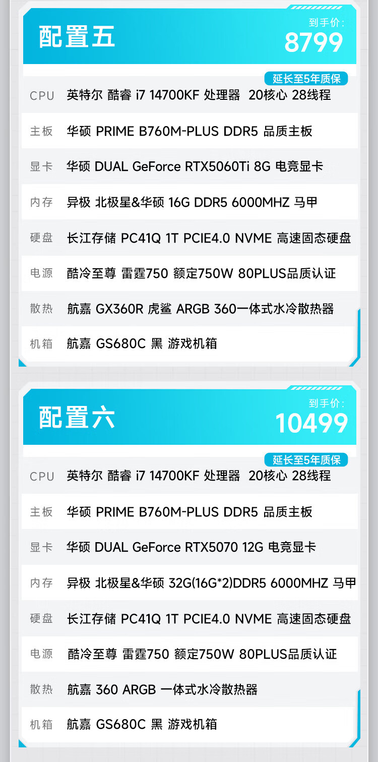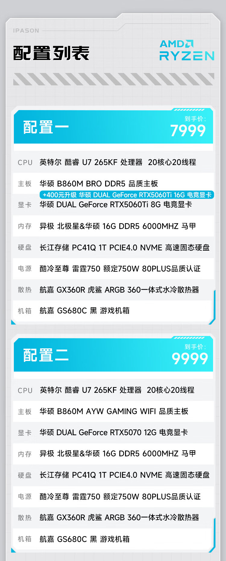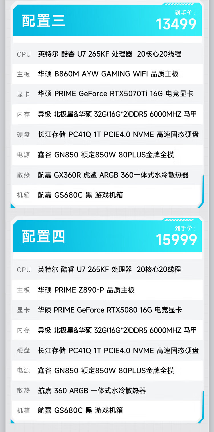 ASUS Core i7 14700KF/265KF/5070/5070ti/5080 ASUS e-sports gaming desktop computer host design rendering DIY assembly computer 265KF+RTX5070 configuration two