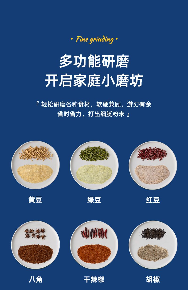 Grinder, flour machine, cooking machine, multifunctional household traditional Chinese medicine grinder, peppercorn grinder, Wanlida blue grinder, three sets of knives, eight-page stainless steel blade