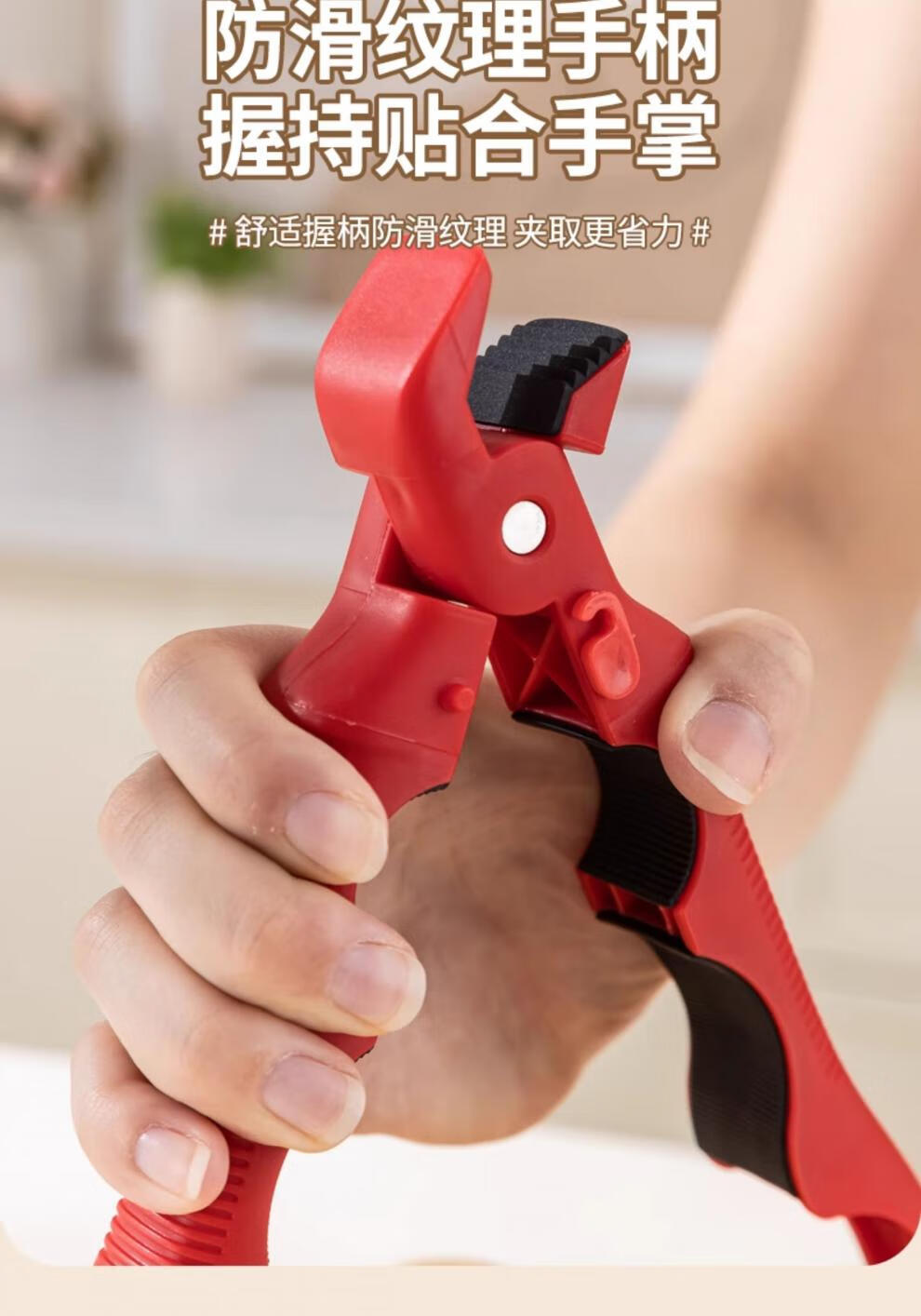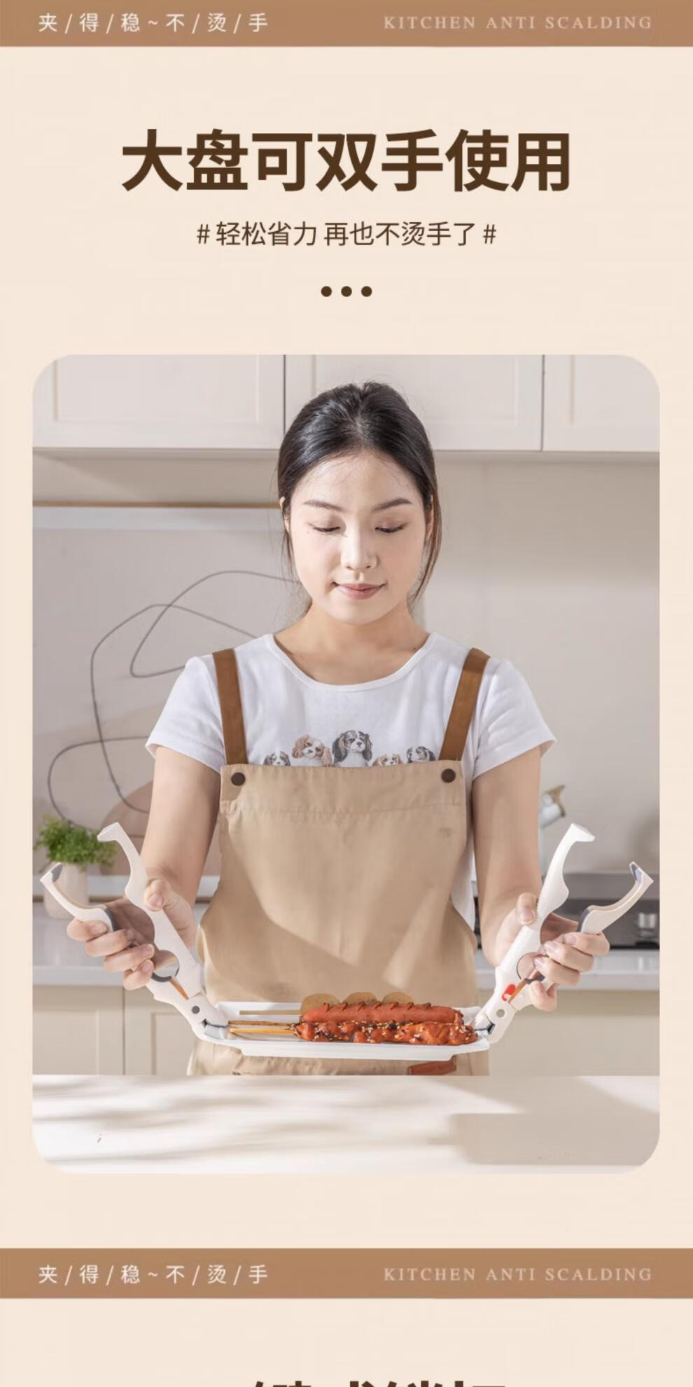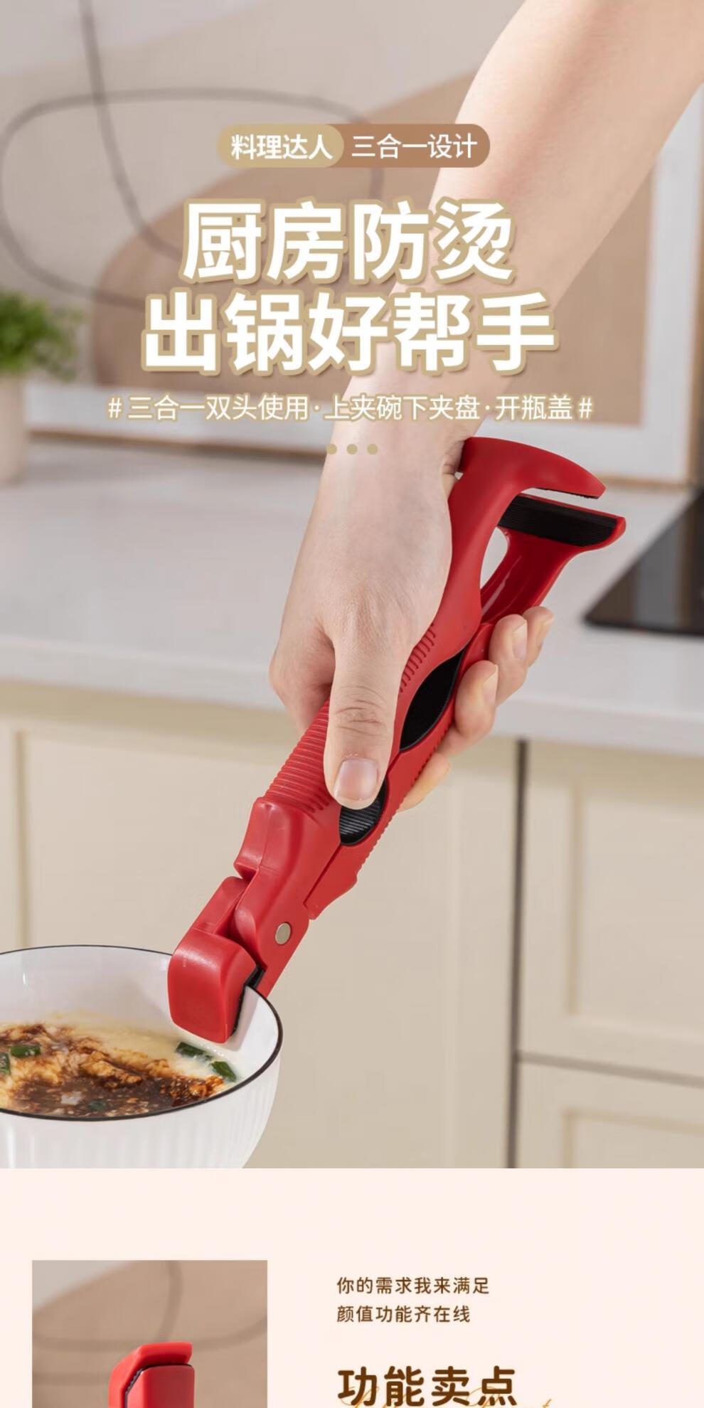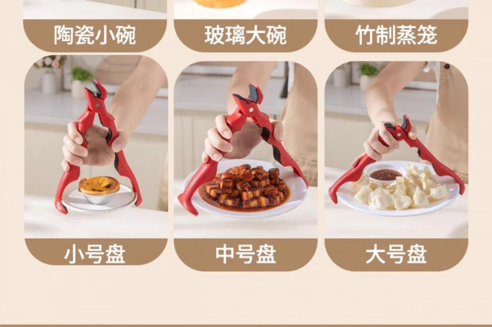 Fat Donglai's same style bowl and plate clamp, anti-slip and anti-scalding three-in-one anti-scalding bowl clamp, anti-slip kitchen clamp, true red + milky white, 1 each 丨Three-in-one