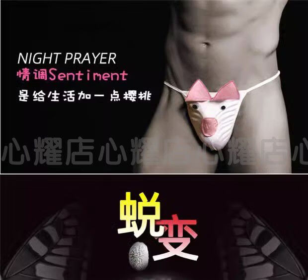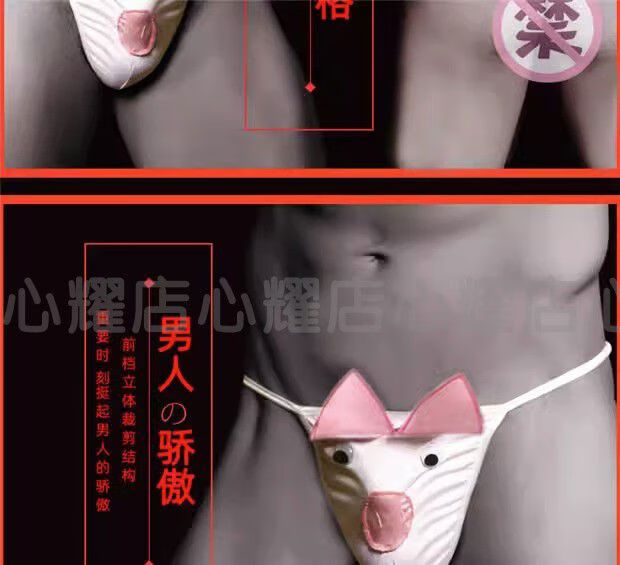 Sexy thong for men, special for couples to have sex, temptation pants, physiological penis, jj set, trendy cute piggy, white cute piggy, one size fits all 80-130Jin Jin is equal to 0.5kg
