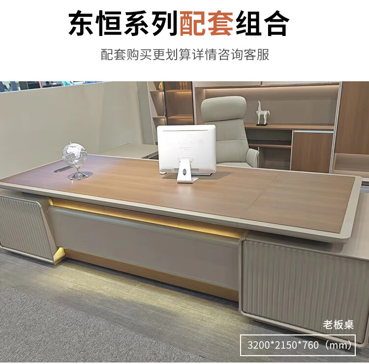 Kong Qiu Mingge (KOQUMGE) boss desk office desk, light luxury and high-end sense, large board table, log president desk, chairman leadership office desk and chair combination 3.2 meters boss table (long auxiliary cabinet is divided into left and right directions)