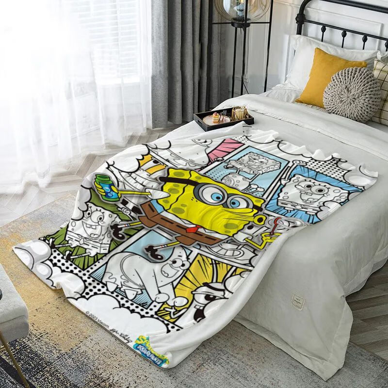 Spongebob cute cartoon pattern flannel blanket dormitory office dual-use nap blanket gt-6 70cm*100cm single layer small size-leg blanket