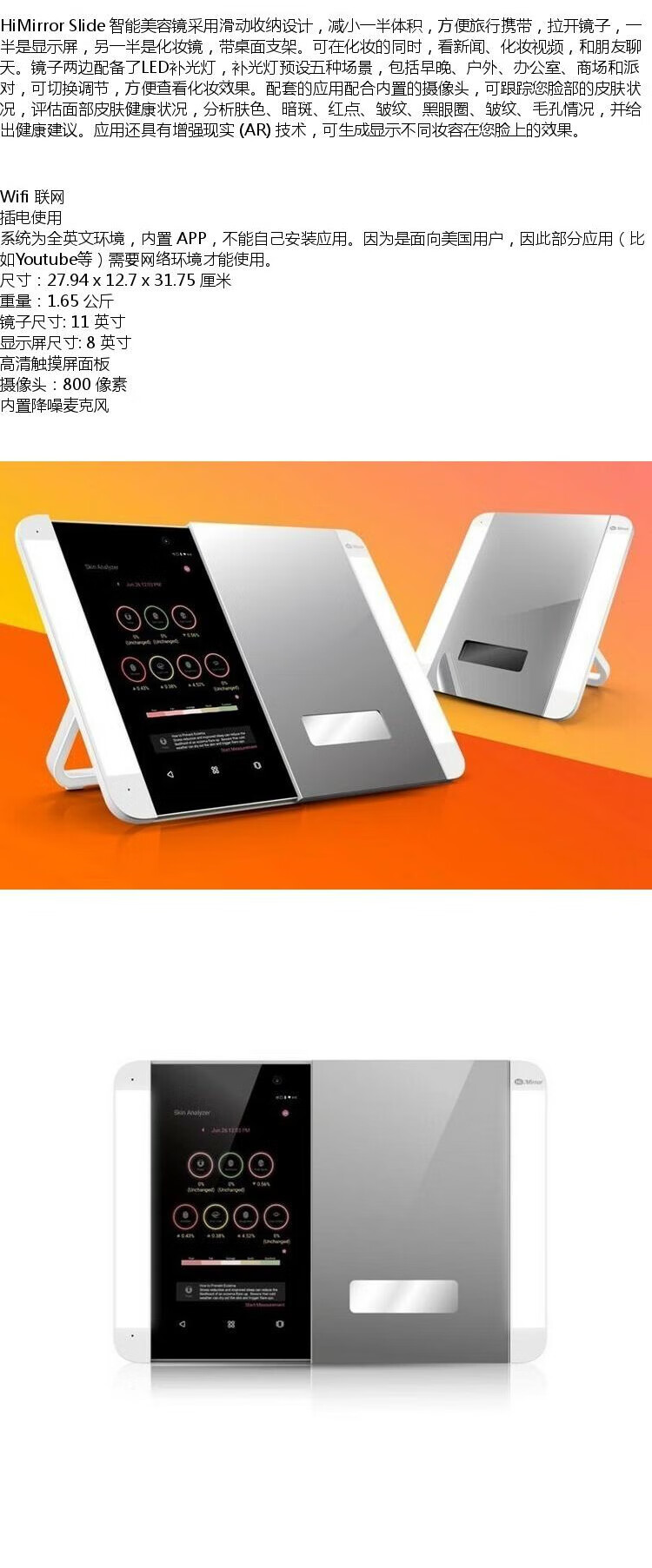 HiMirror Slide smart beauty mirror with camera, microphone, display and fill light