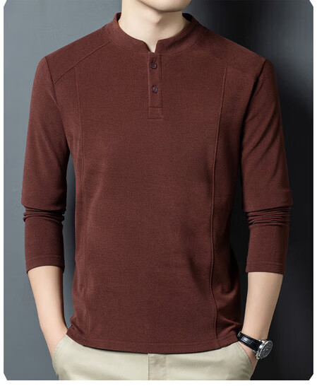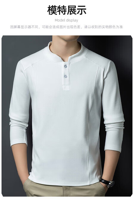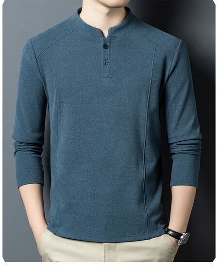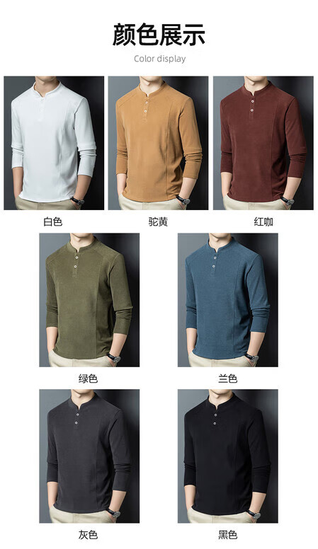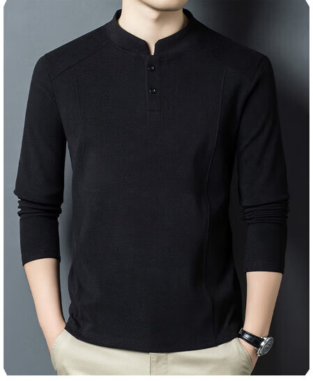 ROMON autumn and winter double-sided German velvet bottoming shirt men's Henry collar trendy versatile long-sleeved T-shirt stand-up collar sweatshirt men's clothing black black M 100-115Jin Jin equals 0.5 kg