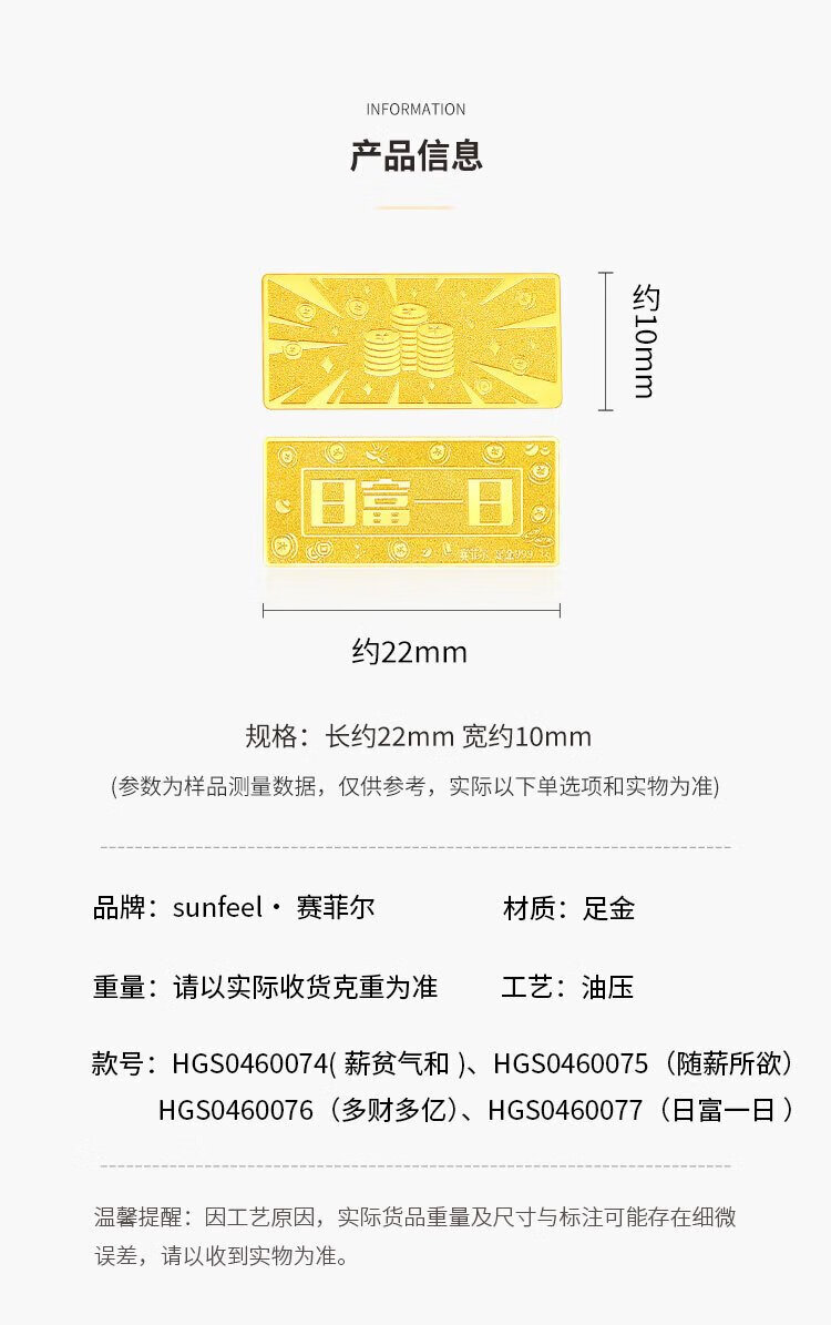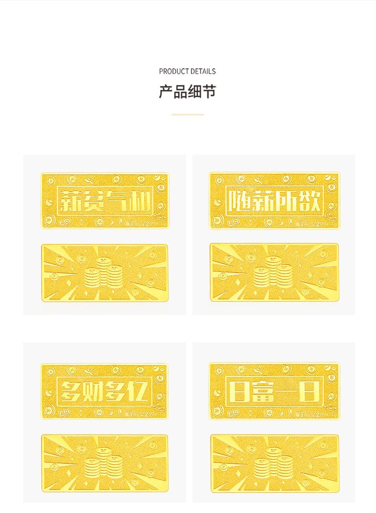 Safir Gold Investment Gold Bars, Rich Gold, Small Gold Bars, Stored Value Collection, Birthday Gifts 1.00g, More Wealth, More than Billions HGS0460076