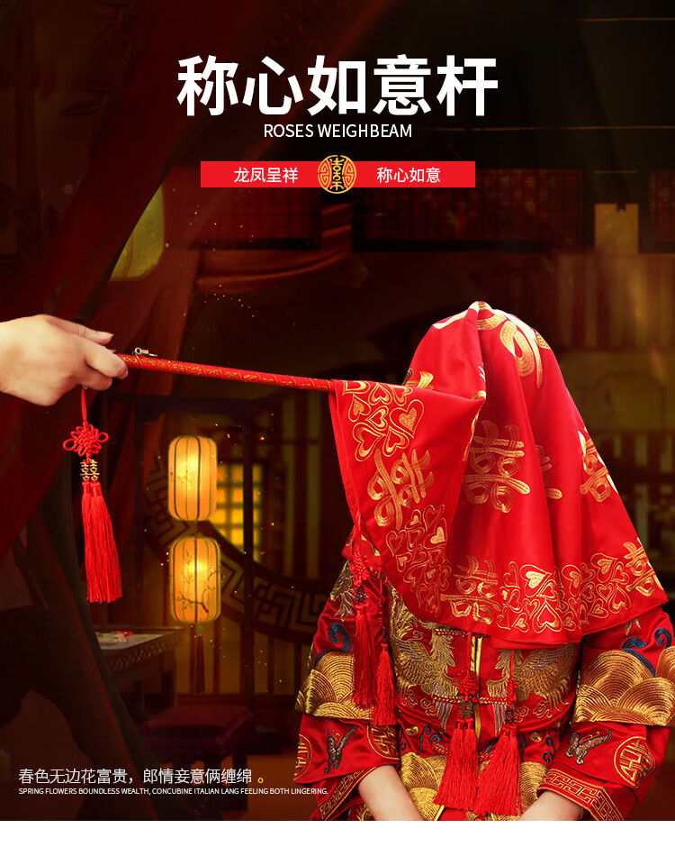 Wedding hijab, happy wedding, happy wedding, wedding ceremony, red hijab, wedding supplies, happy stick props, scale beam, gold-inlaid hollow style
