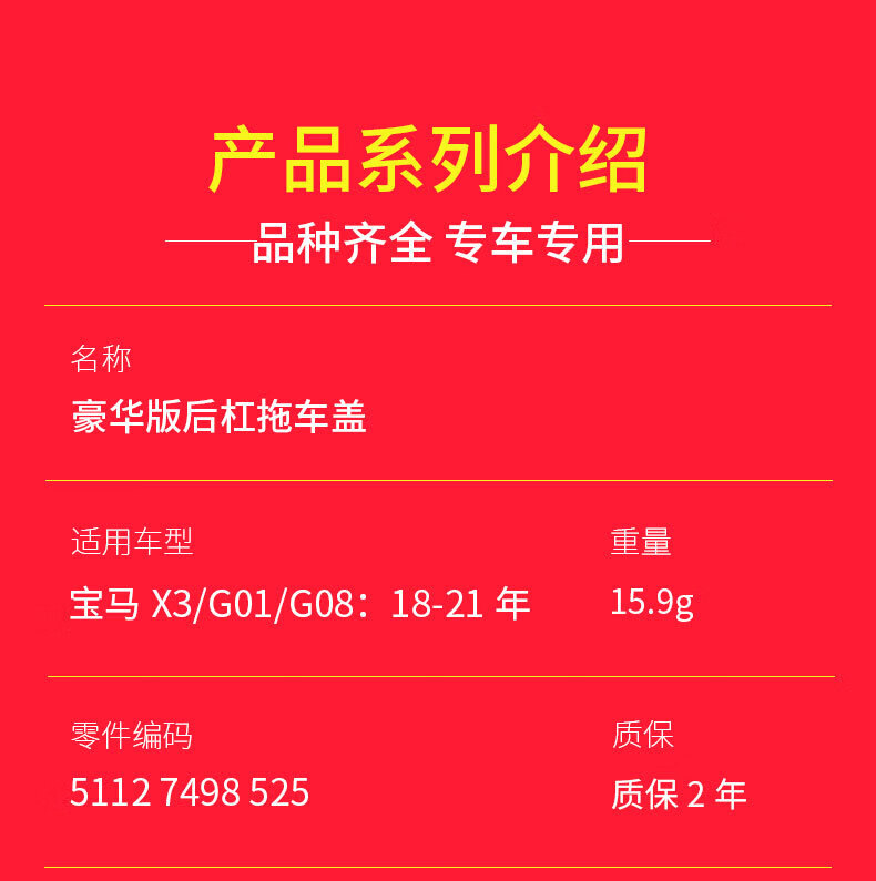 Suitable for 18-21 BMW X3 rear bumper trailer cover G01 towing hook hole cover JLC white