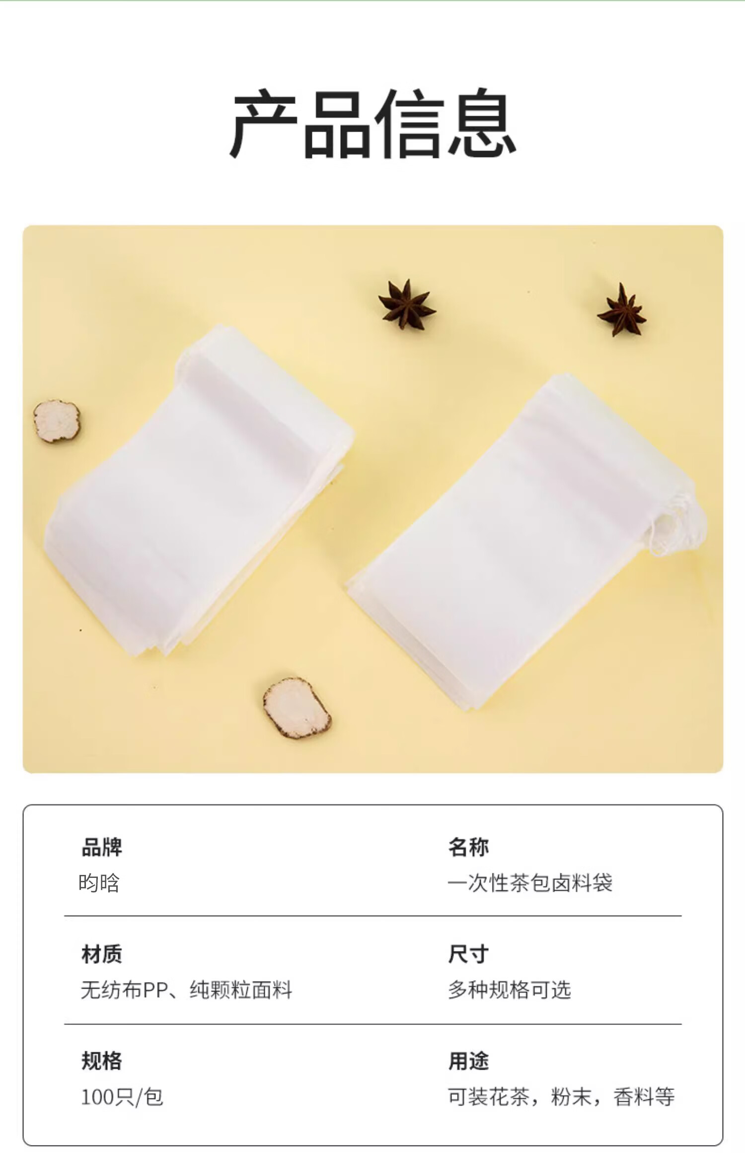 Jewelry storage bag non-woven wedding tea bag disposable filtered tea bag Chinese medicine gauze bag seasoning decoction braised pork disposable non-woven tea bag-8*10cm-100 pieces