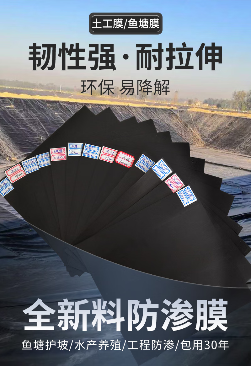 Pengxiwei fish pond anti-seepage membrane thickened septic tank special geotextile reservoir anti-seepage water breeding slope protection black tarpaulin new material 0.5 mm 8 meters wide 8 meters long