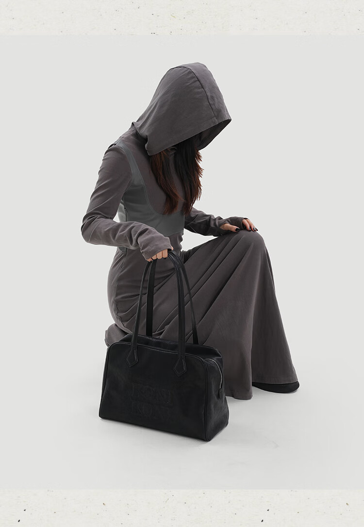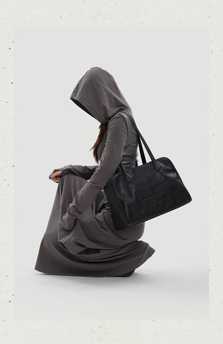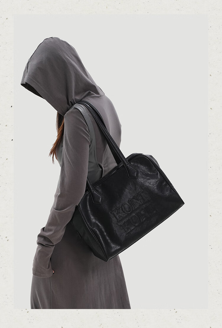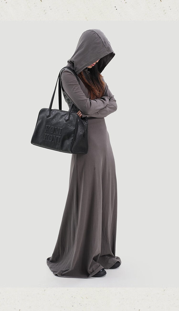 KONIKONI Women's Handbag Large Capacity Shoulder Bag Genuine Leather Bowling Tote Bag Women 2026 New Autumn and Winter Boston Black