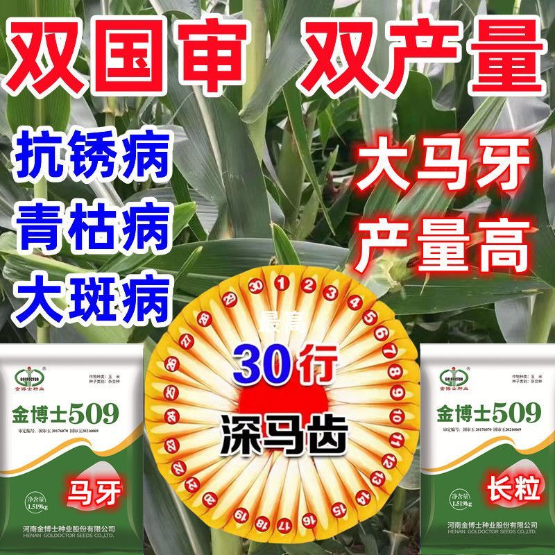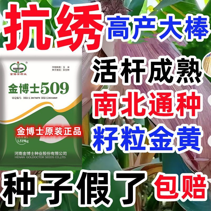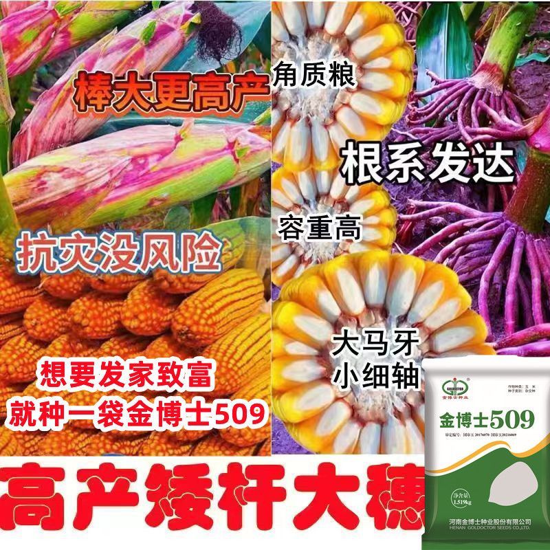 Bulk collection of original high-yielding corn seeds red-shaft dwarf stems insect-resistant and disease-resistant golden grain twins Ma Ya Bao Gu high-yield Wang Shuangguo Approval Dr. Jin 509 drought-resistant corn drought-resistant lodging and insect-resistant one bag of three Jin Jin is equal to 0.5 kilograms + high yield technology