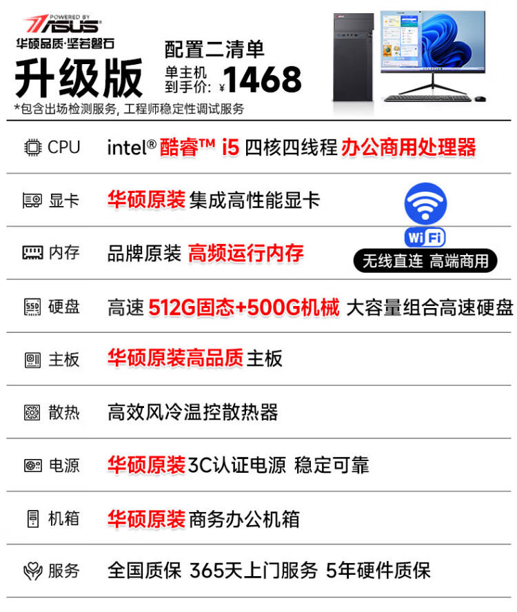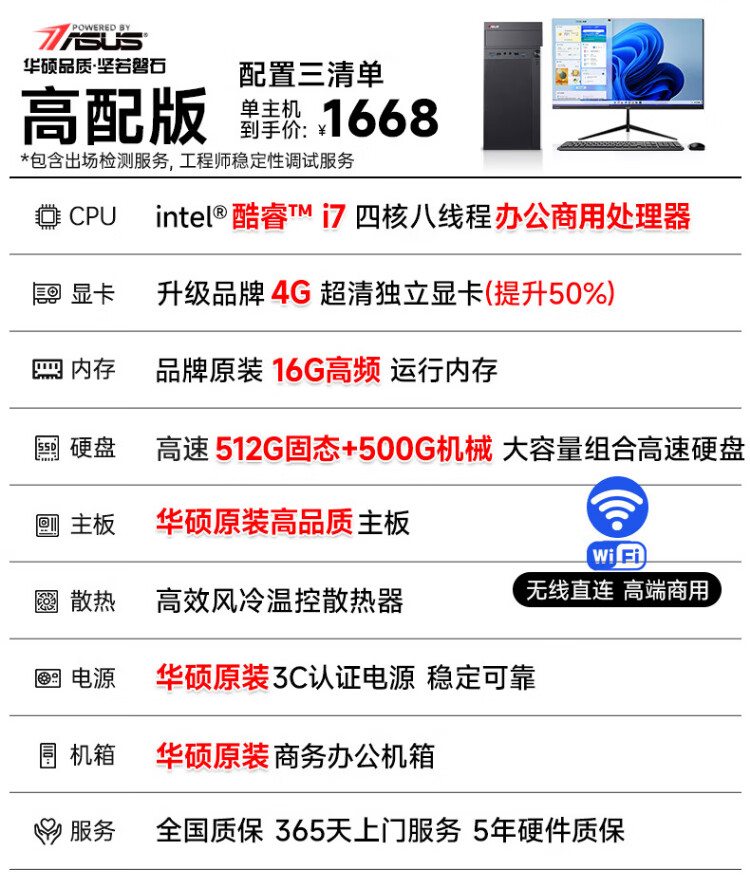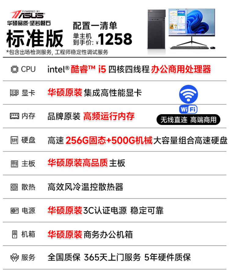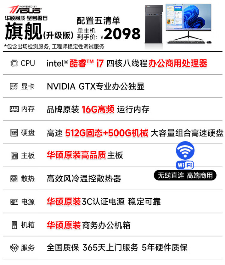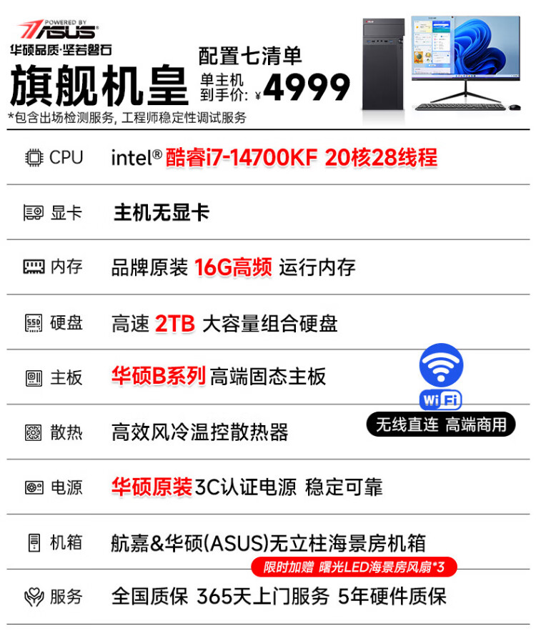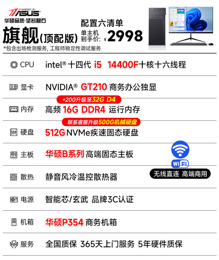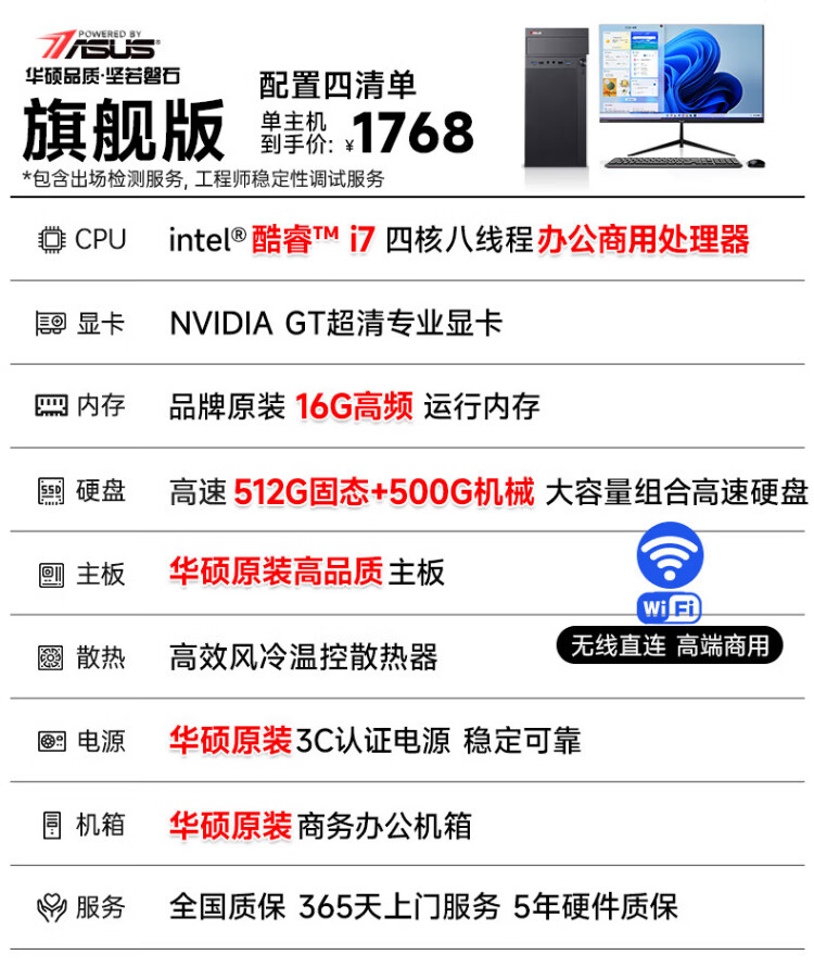 ASUS (ASUS) 14th generation Core i7 desktop computer host desktop computer office computer office host assembly computer independent graphics business office large subsidy computer complete set Core i5/1T office high-speed hard drive ASUS (ASUS) single host + keyboard and mouse package + five-year warranty