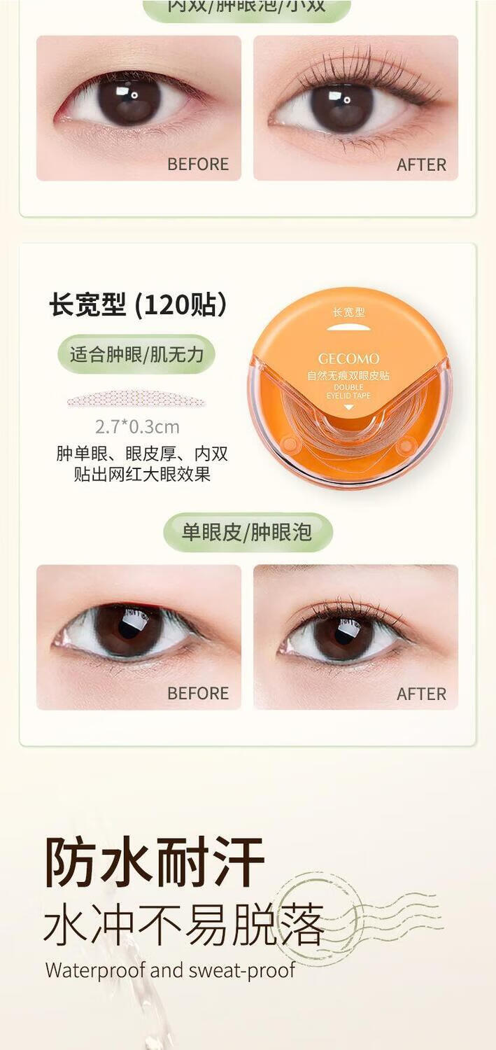 Iwava roller double eyelid patch lace beauty patch seamless oblique cut invisible portable dustproof inner double shaping long and wide type 1 box 120 pieces included (comes with clip and fork)