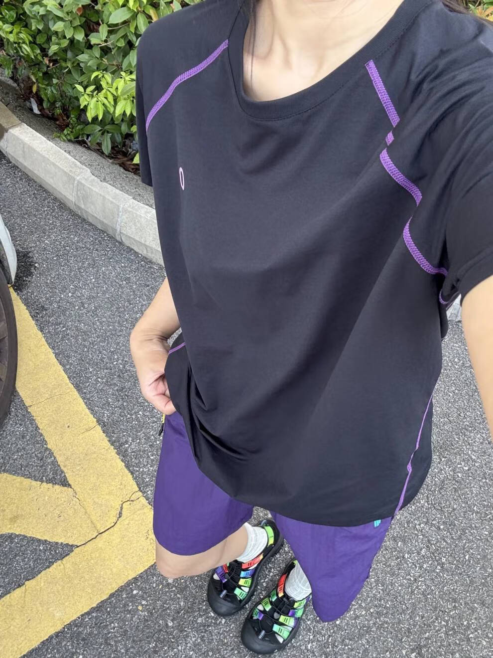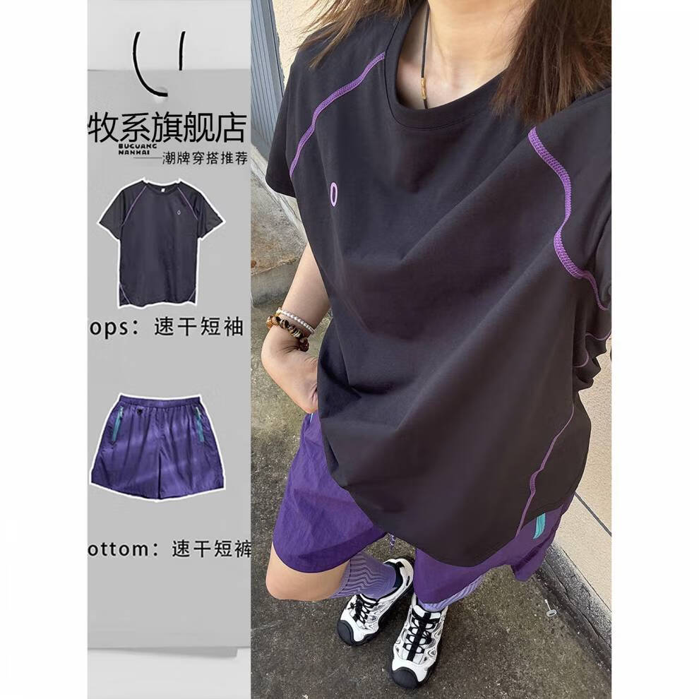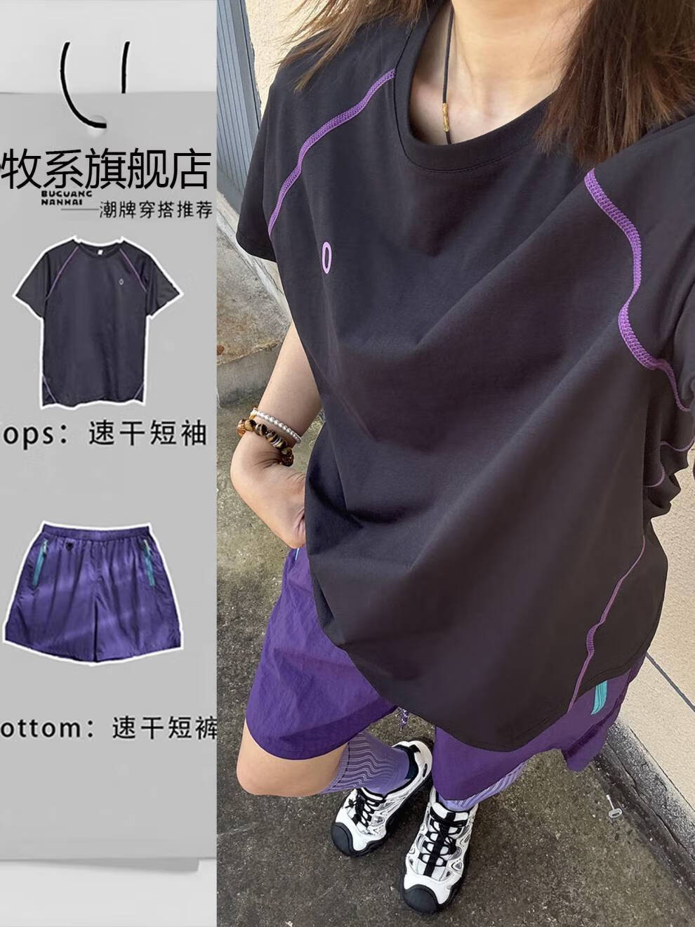 Nanbo Maru outdoor sunscreen badminton quick-drying dry clothes women's short-sleeved T-shirts for small people to wear mountain cycling clothes sportswear two-piece set black quick-drying_drying T-shirt + purple quick-drying_drying shorts M_100-115Jin Jin equals 0.5 kg