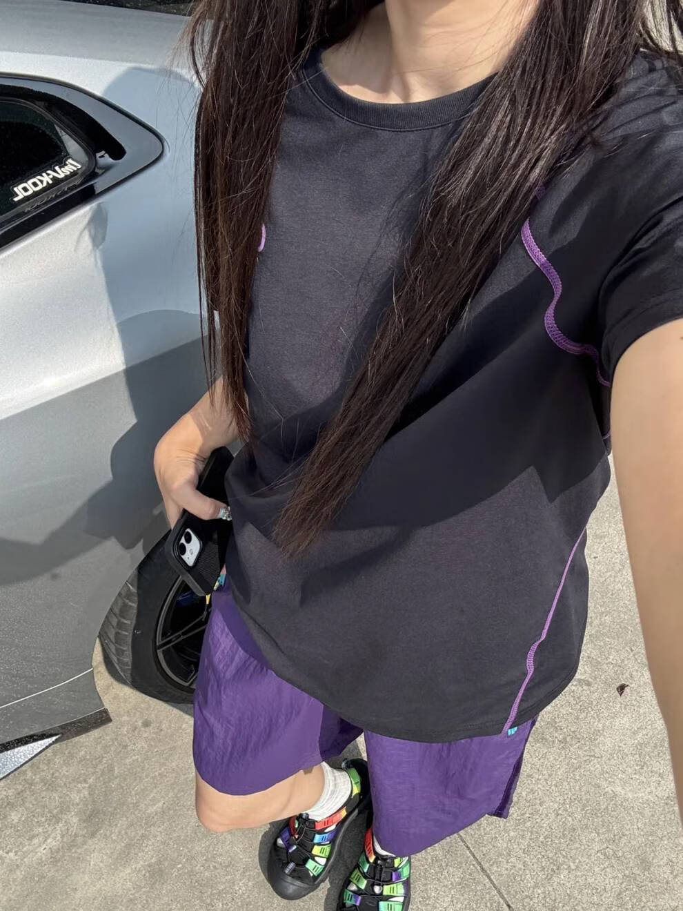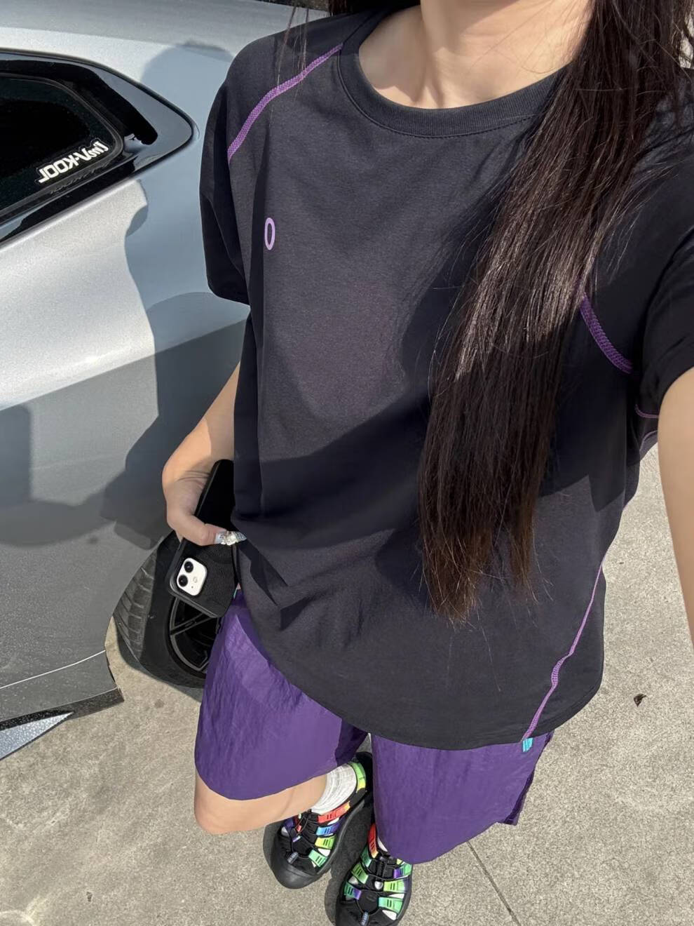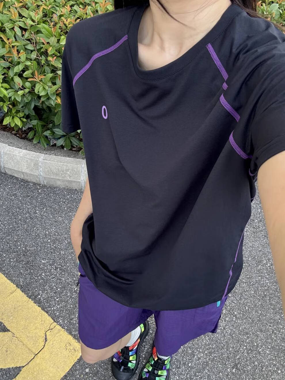 Nanbo Maru outdoor sunscreen badminton quick-drying dry clothes women's short-sleeved T-shirts for small people to wear mountain cycling clothes sportswear two-piece set black quick-drying_drying T-shirt + purple quick-drying_drying shorts M_100-115Jin Jin equals 0.5 kg