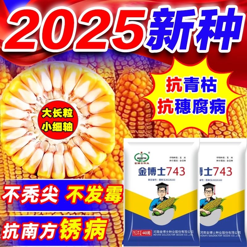 High-yielding corn seeds, short stalks, large sticks, disease-resistant, lodging-resistant, drought-resistant, high-temperature and waterlogging-resistant, bract seeds resistant to ear rot, Dr. Jin 743 disease-resistant and drought-resistant (4,400 grains per generation)
