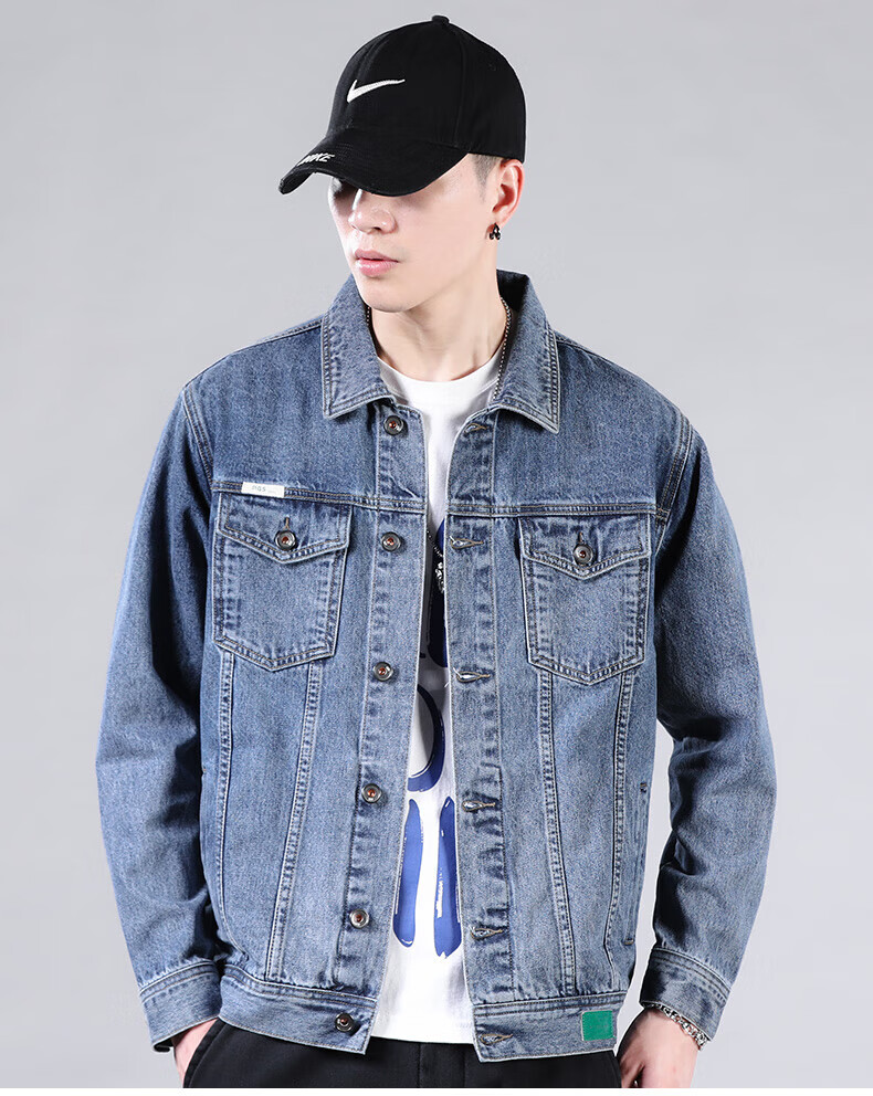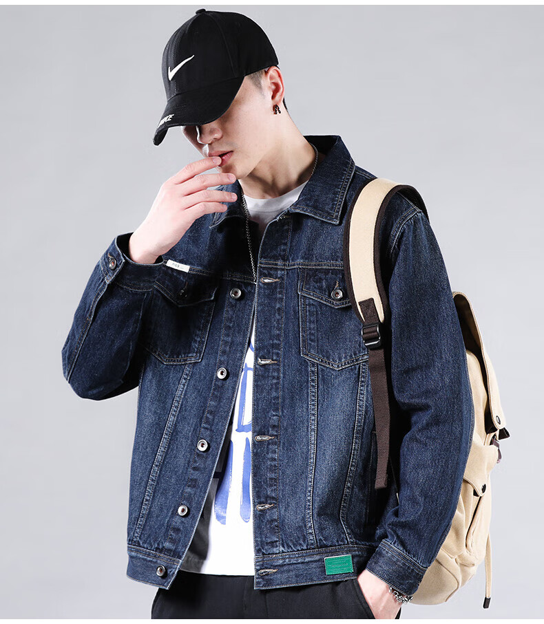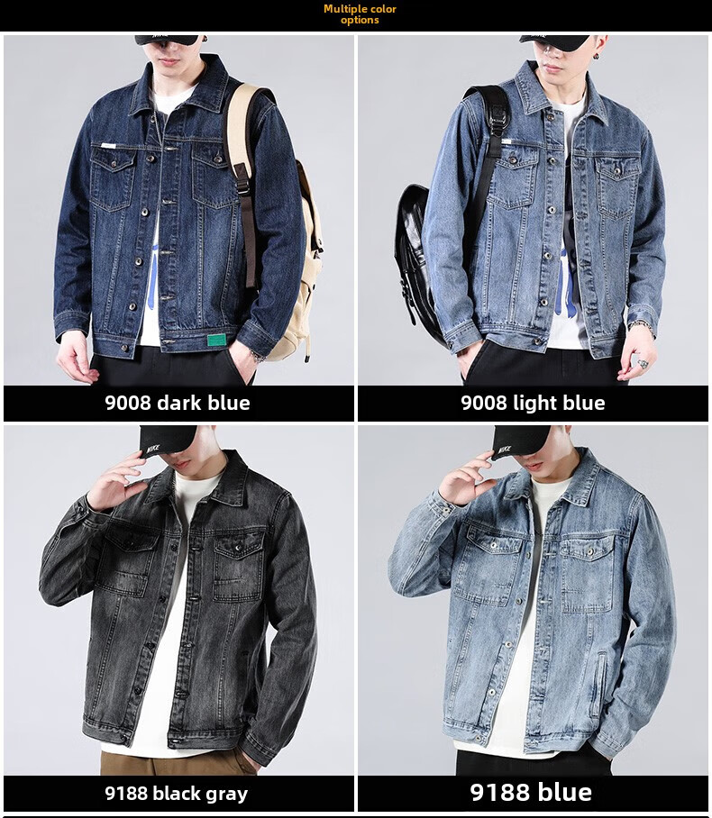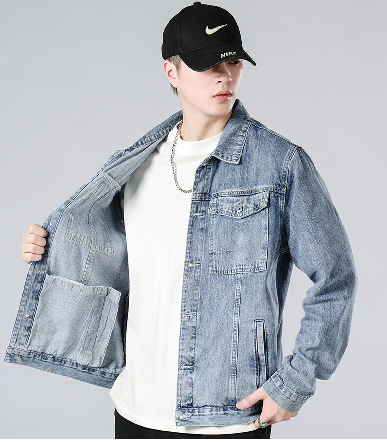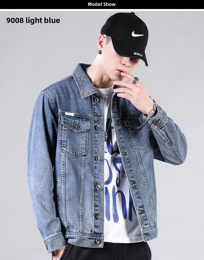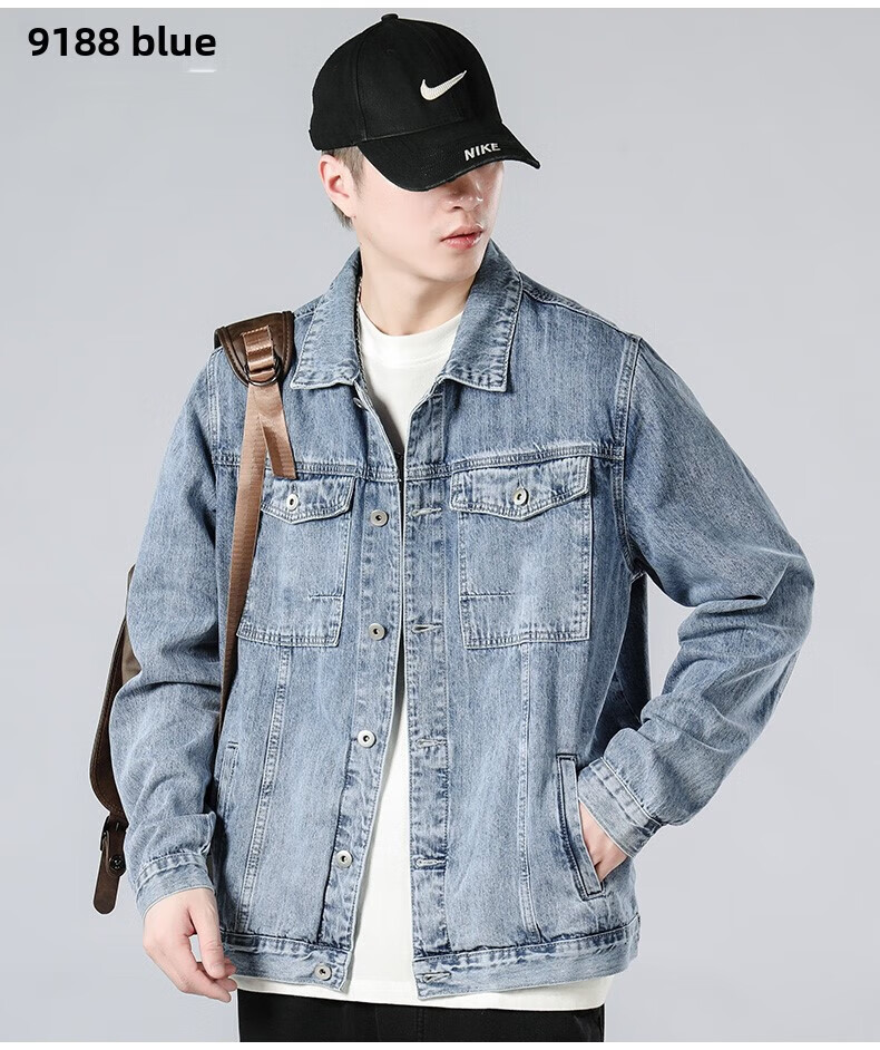 ROYAL PALM POLO SPORTS CLUB New Men's Denim Jacket Jacket Men's Trendy Brand Handsome Spring and Autumn Loose Casual Jacket Light Blue-9008 4XL Weight 175-190Jin Jin equals 0.5 kg
