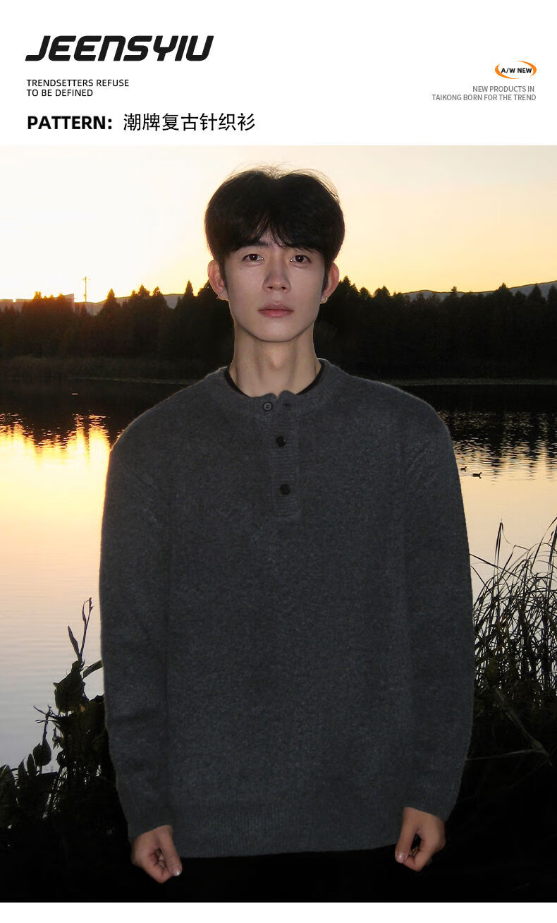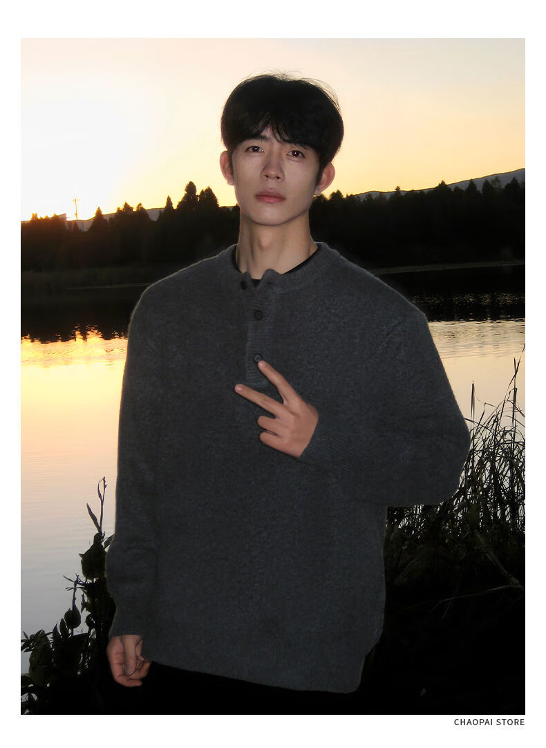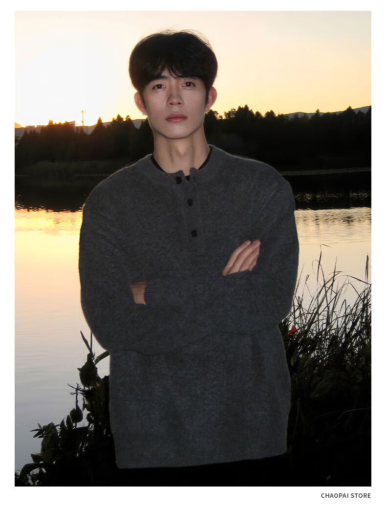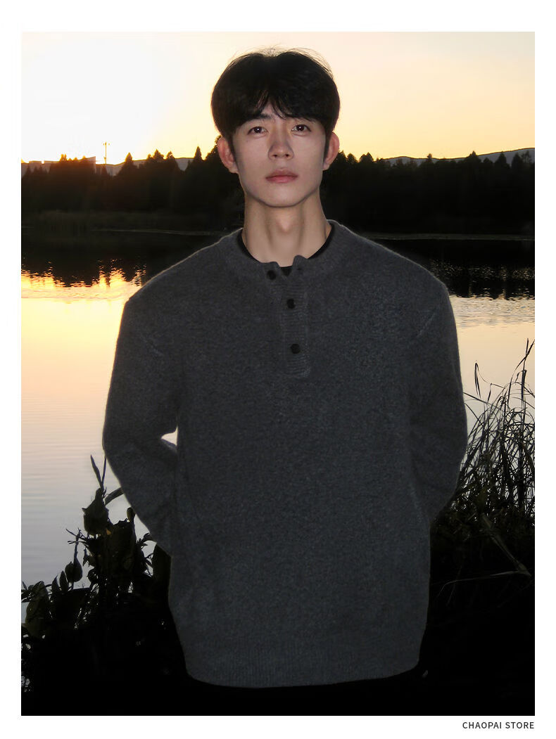 BOMP American Henry collar sweater men's winter cleanfit lazy style thickened sweater-like warm top 3531 dark gray M M