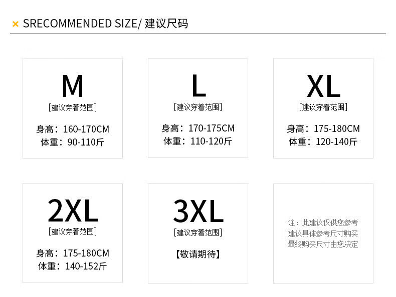 China (cm) 165 / 88-90 170 / 96-98 175 / 108-110 180 / 118-122 185 / 126-130