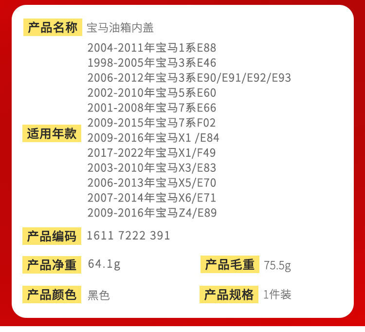 Suitable for BMW 3 Series 5 Series 7 Series car fuel tank cover BMW X1X3X5X6 fuel tank inner cover 16117222JLC 1 fuel tank inner cover