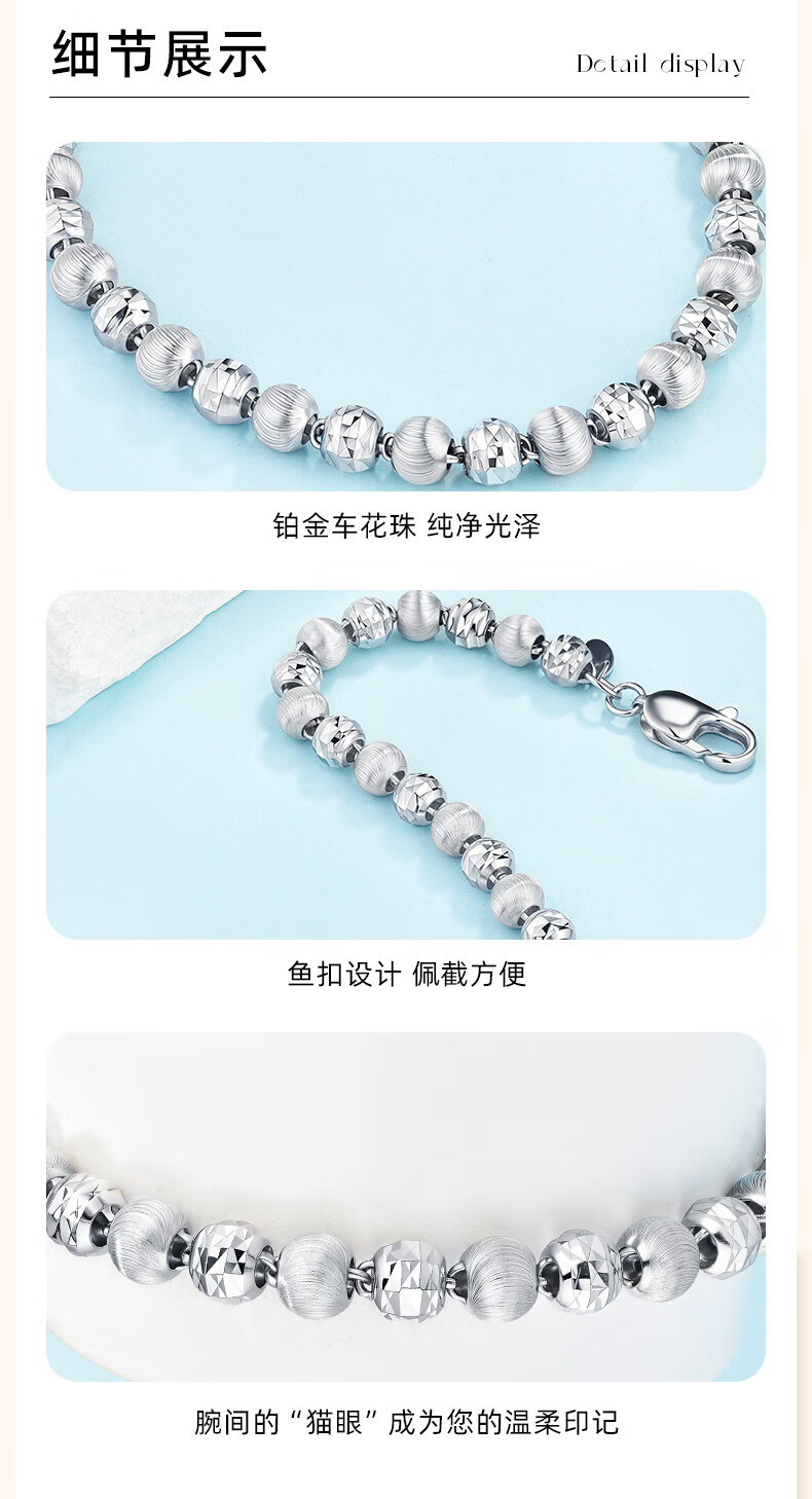 GsunG platinum PT950 cat eye bracelet fashion car flower bead ladies cat eye bead bracelet pure platinum ball bead chain bracelet price by gram, contact customer service before bidding