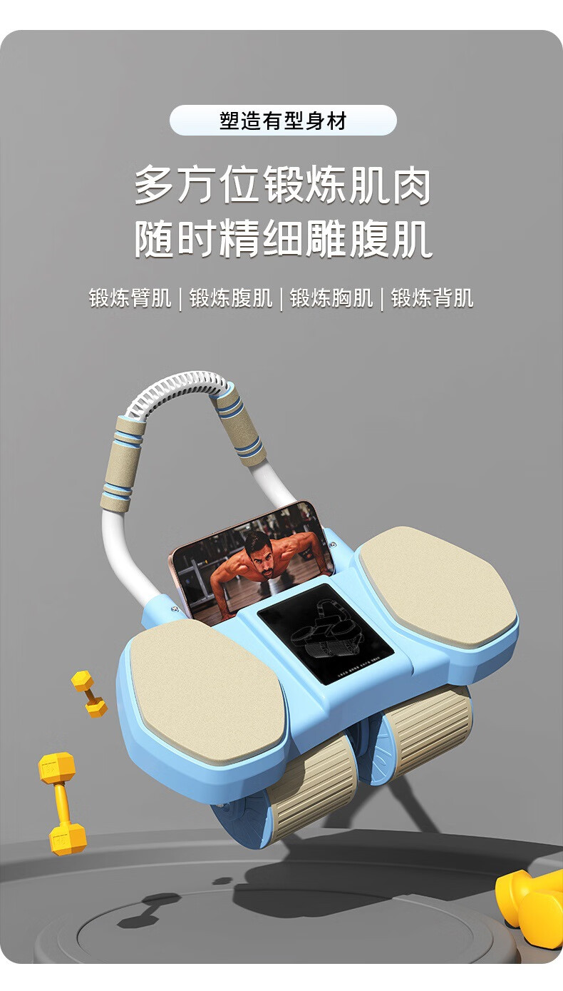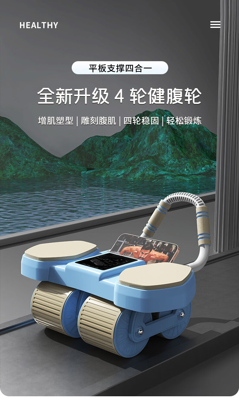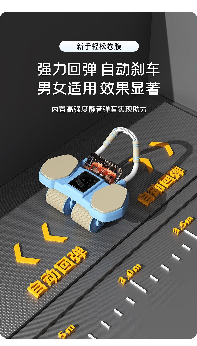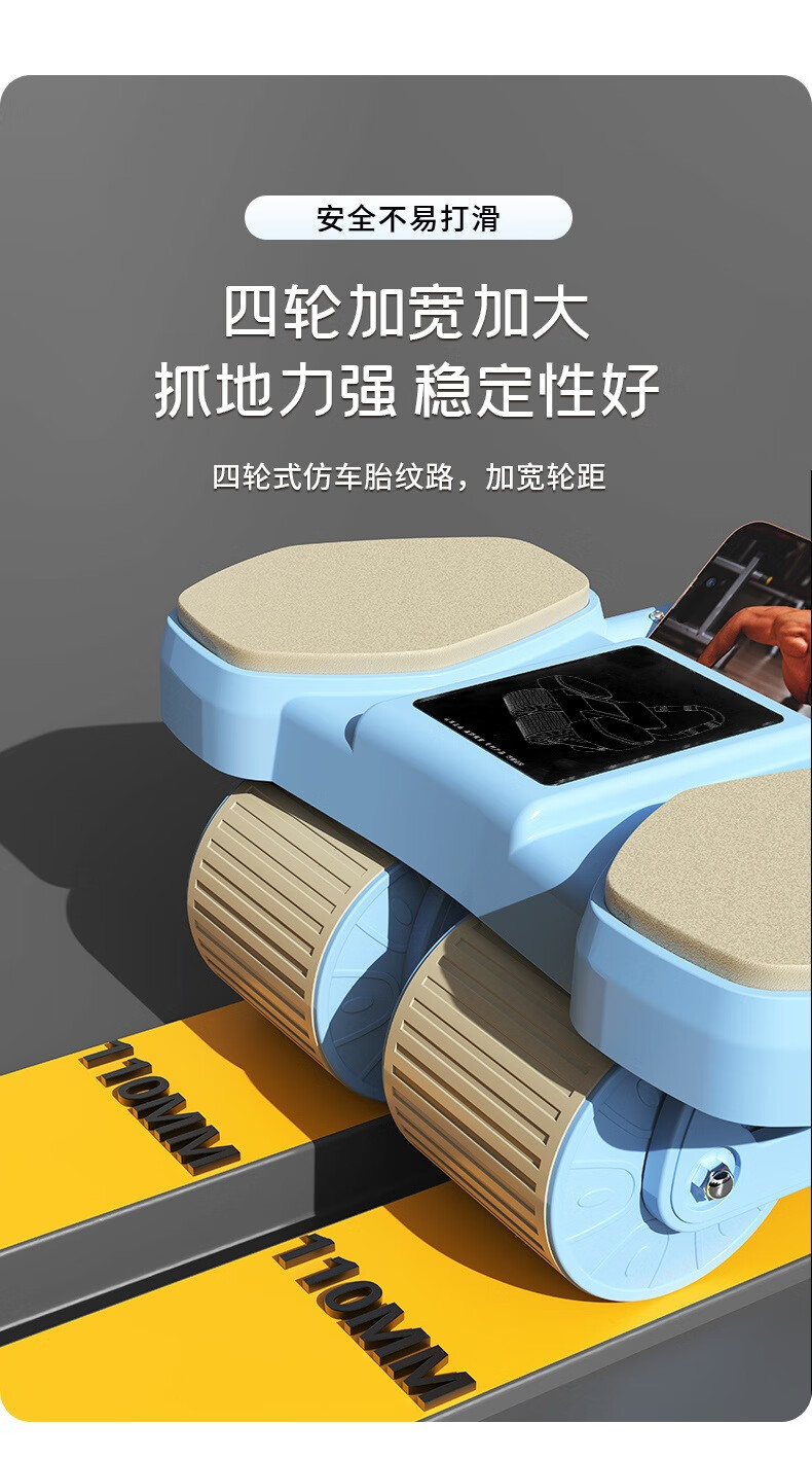 Cooldis four-wheeled abdominal wheel with automatic rebound 2025 new home slimming belly roll and abdominal muscle artifact sports and fitness equipment new upgrade-4 wheels 4 elbows-blue Bluetooth AI intelligent abdominal wheel