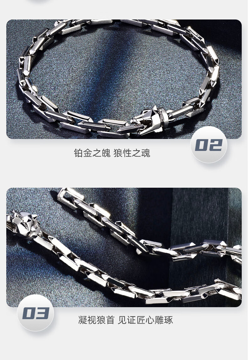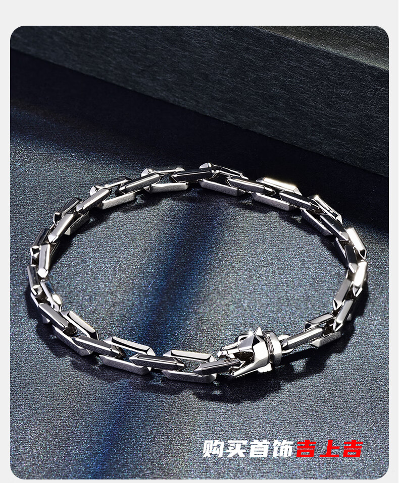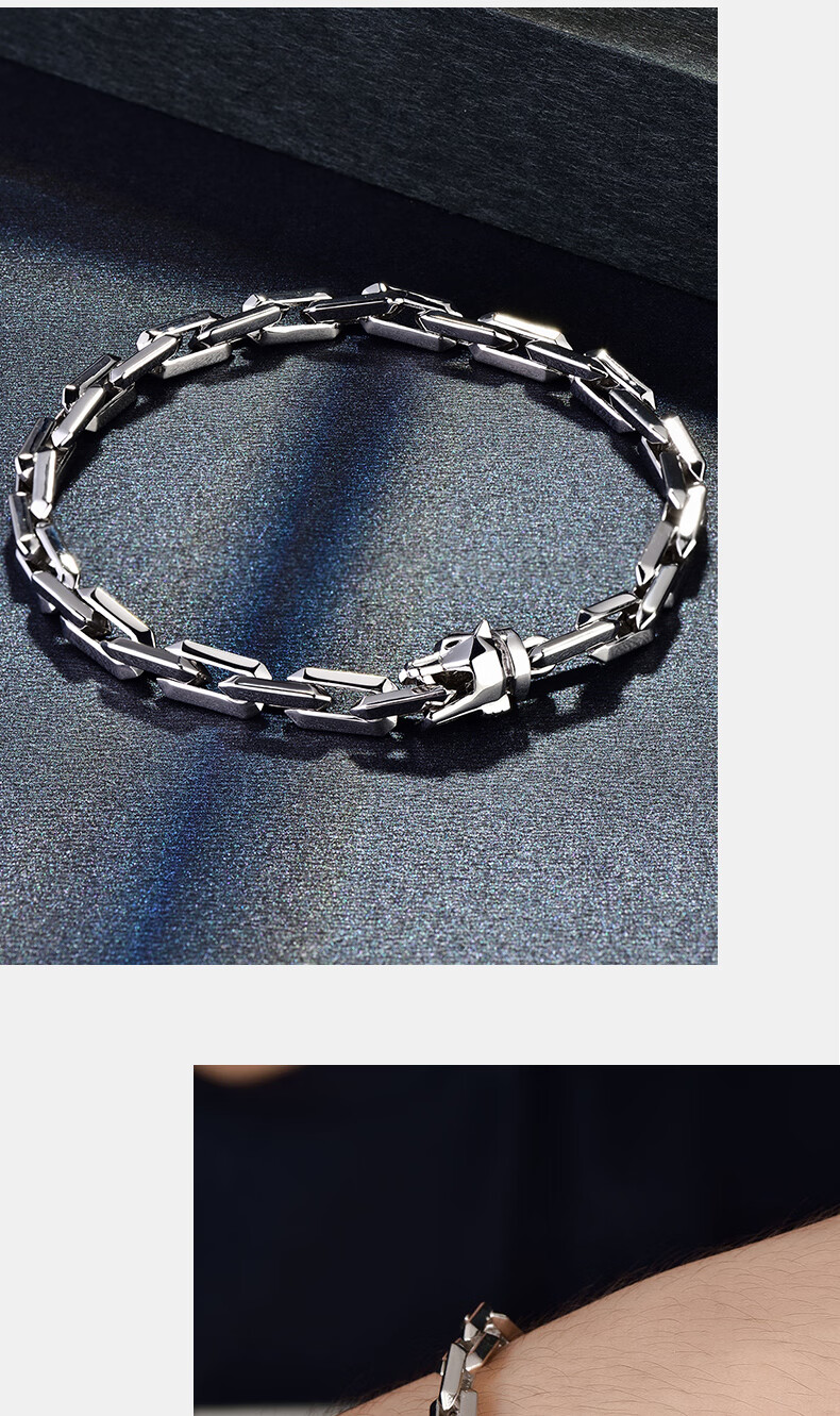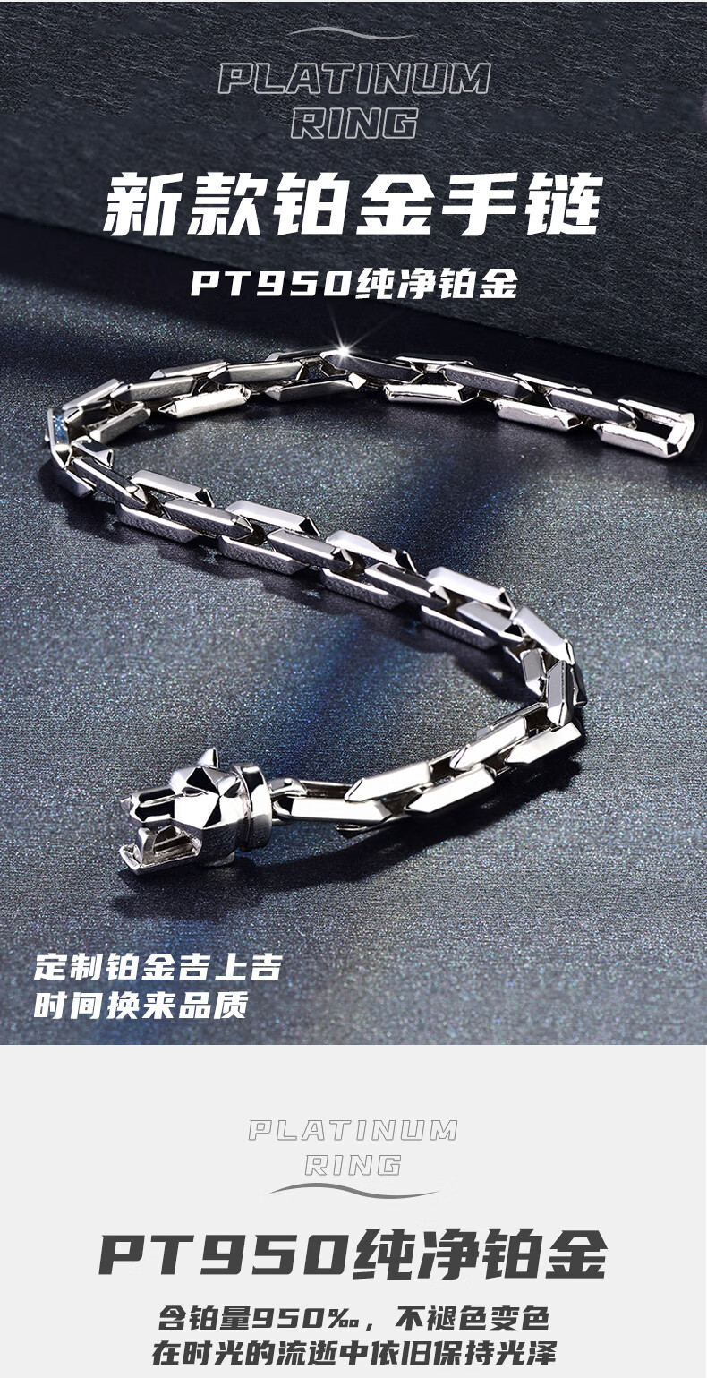 GsunG platinum PT950 wolf head bracelet, simple and fashionable men's pure platinum solid bracelet, can be customized as a gift for boyfriend. Priced by gram, contact customer service before bidding.