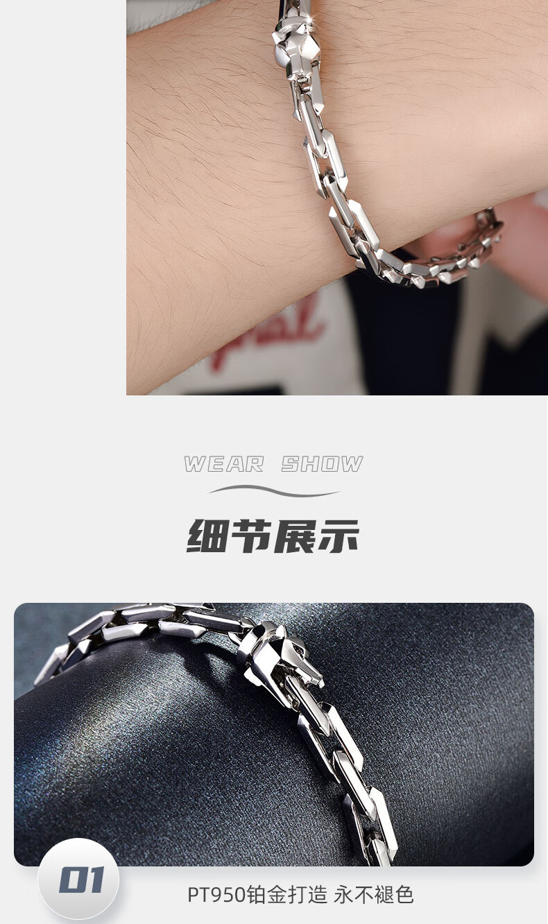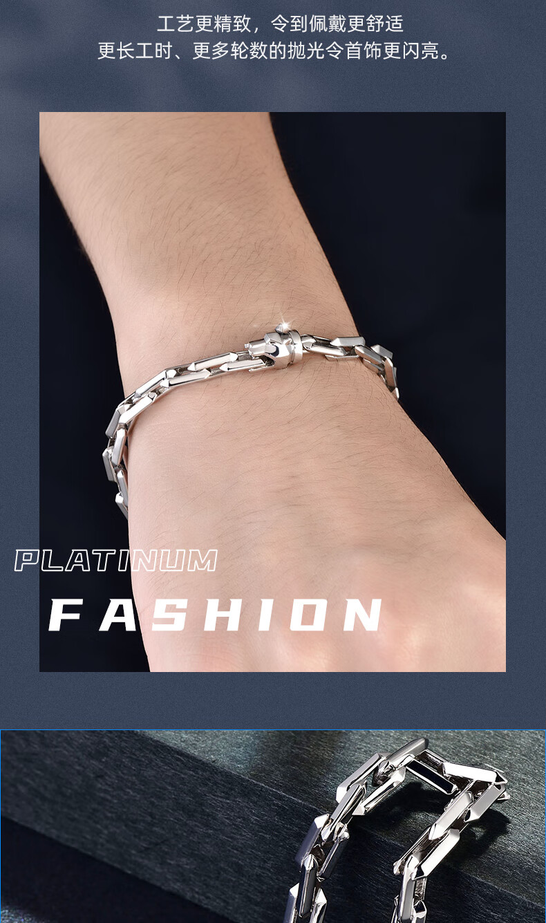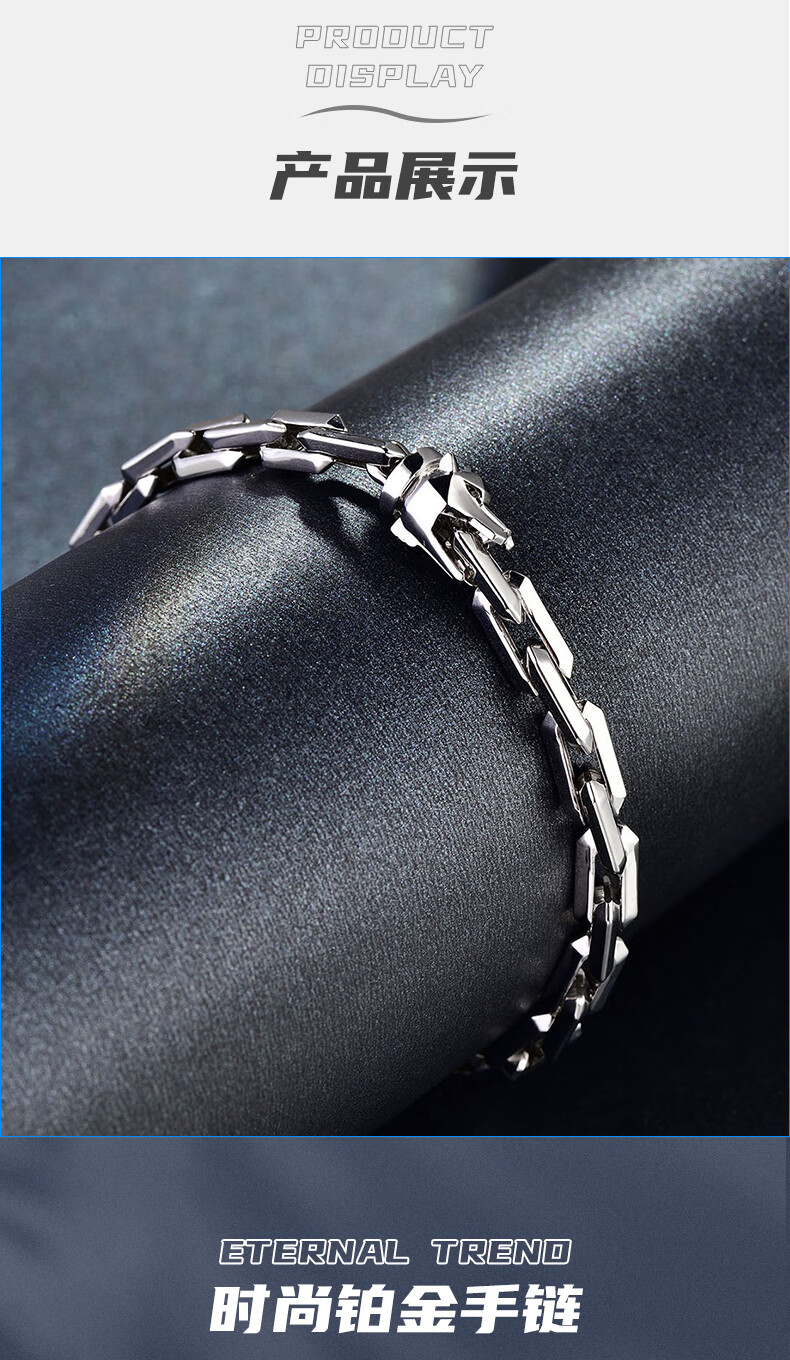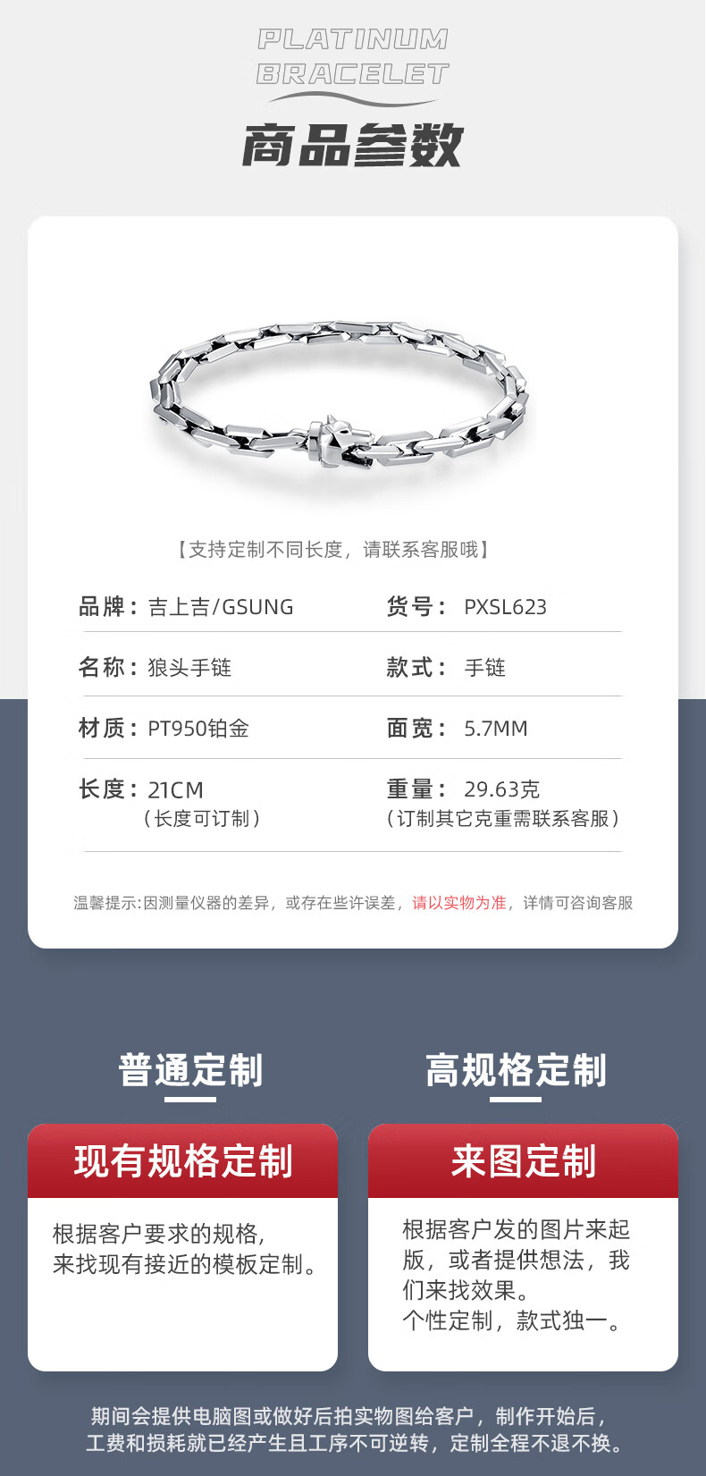 GsunG platinum PT950 wolf head bracelet, simple and fashionable men's pure platinum solid bracelet, can be customized as a gift for boyfriend. Priced by gram, contact customer service before bidding.