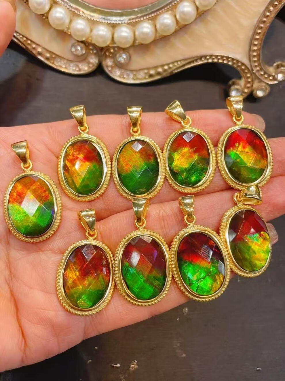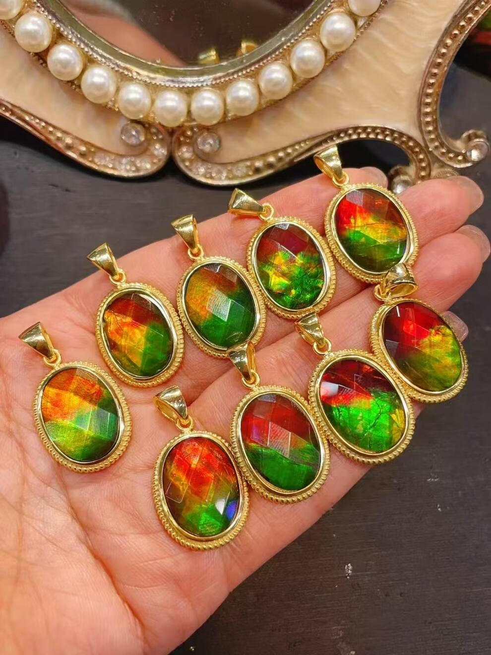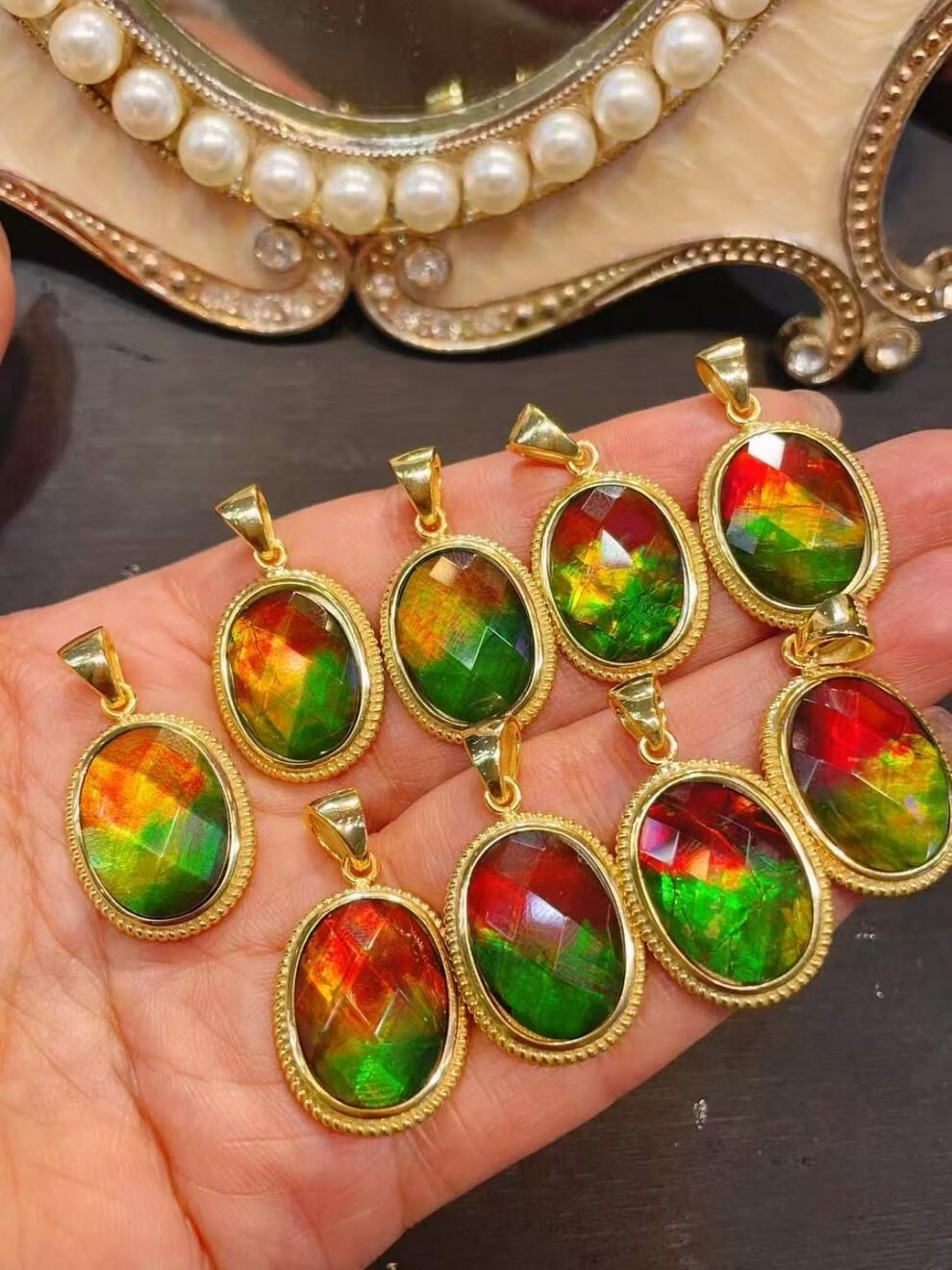 DRJEFUN Canadian Ammonite Oval Pendant 925 Silver Inlaid 21.8*17.3mm .3MM