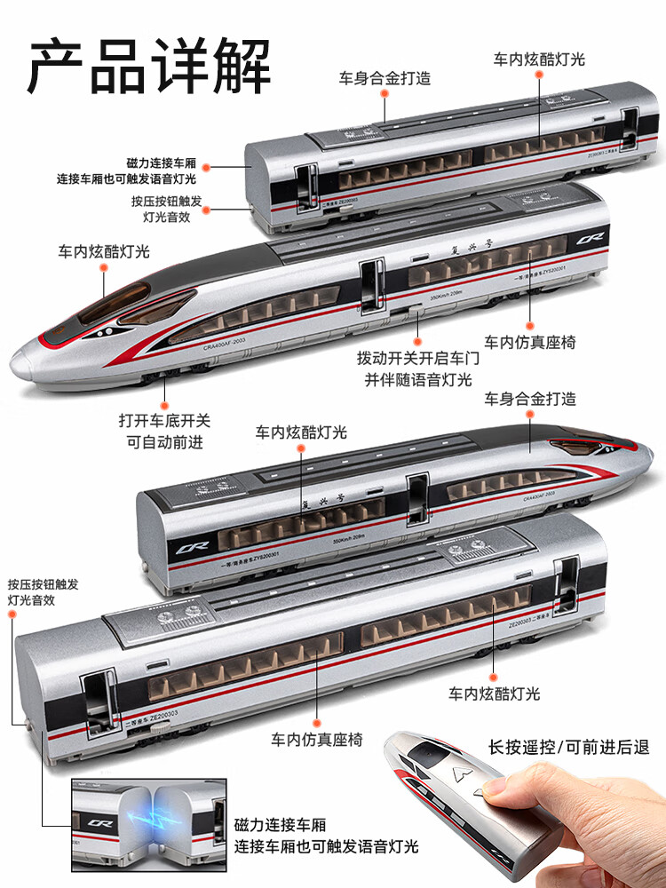 High-speed rail toy train alloy Fuxing train model children's electric track high-speed train remote control car remote control high-speed rail Fuxing Silver Double Festival