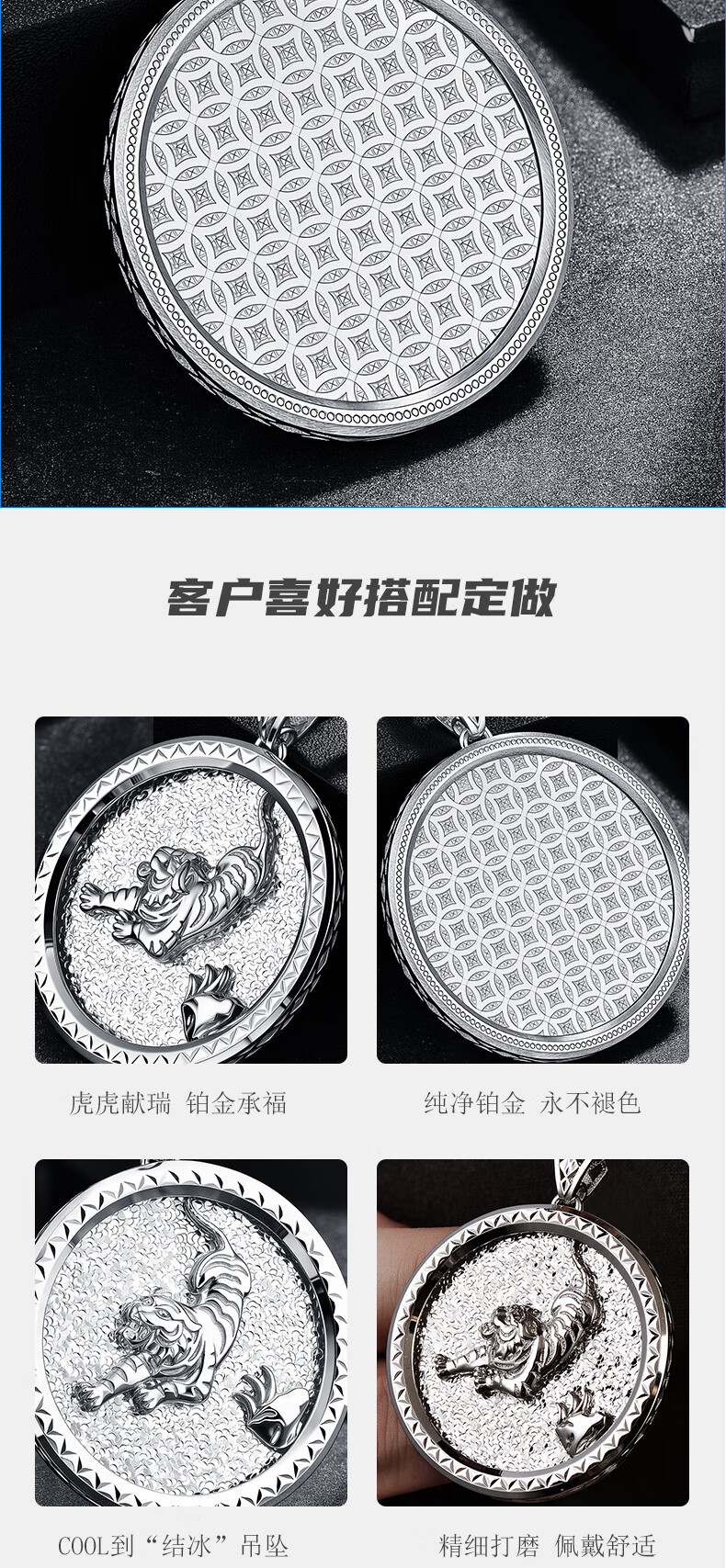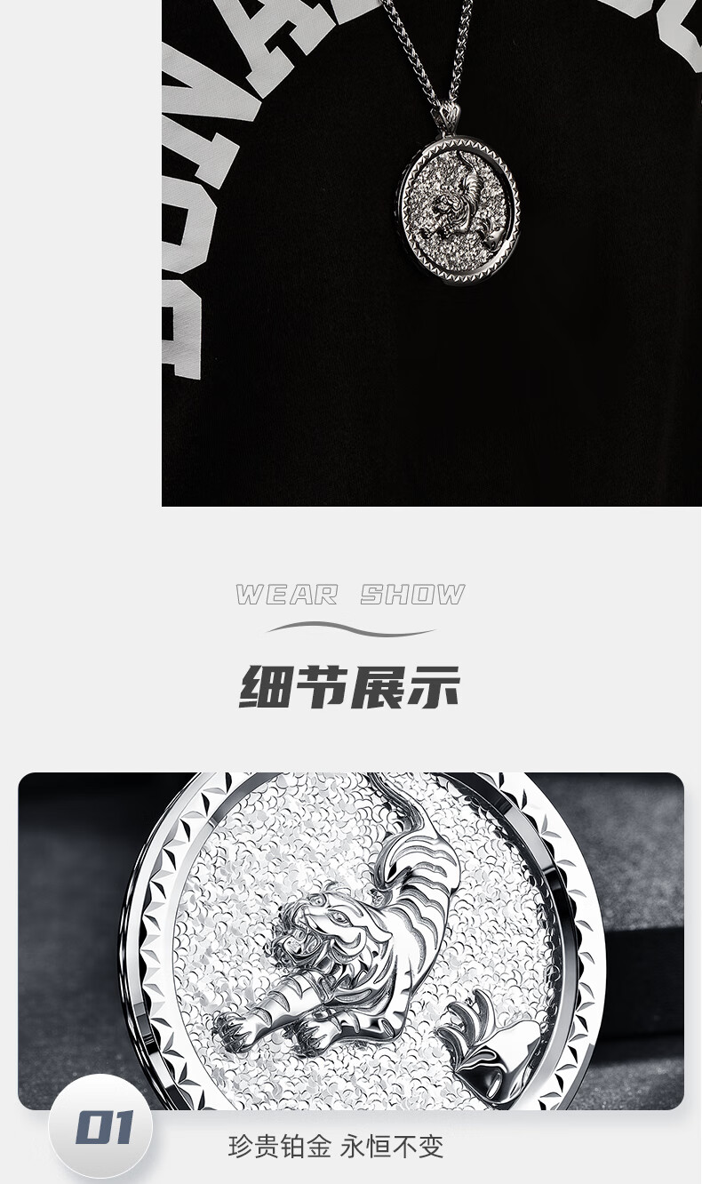 GsunG platinum pt950 zodiac broken ice tiger pendant men's solid platinum pendant can be customized as a gift for boyfriend. Priced by gram, contact customer service before bidding.