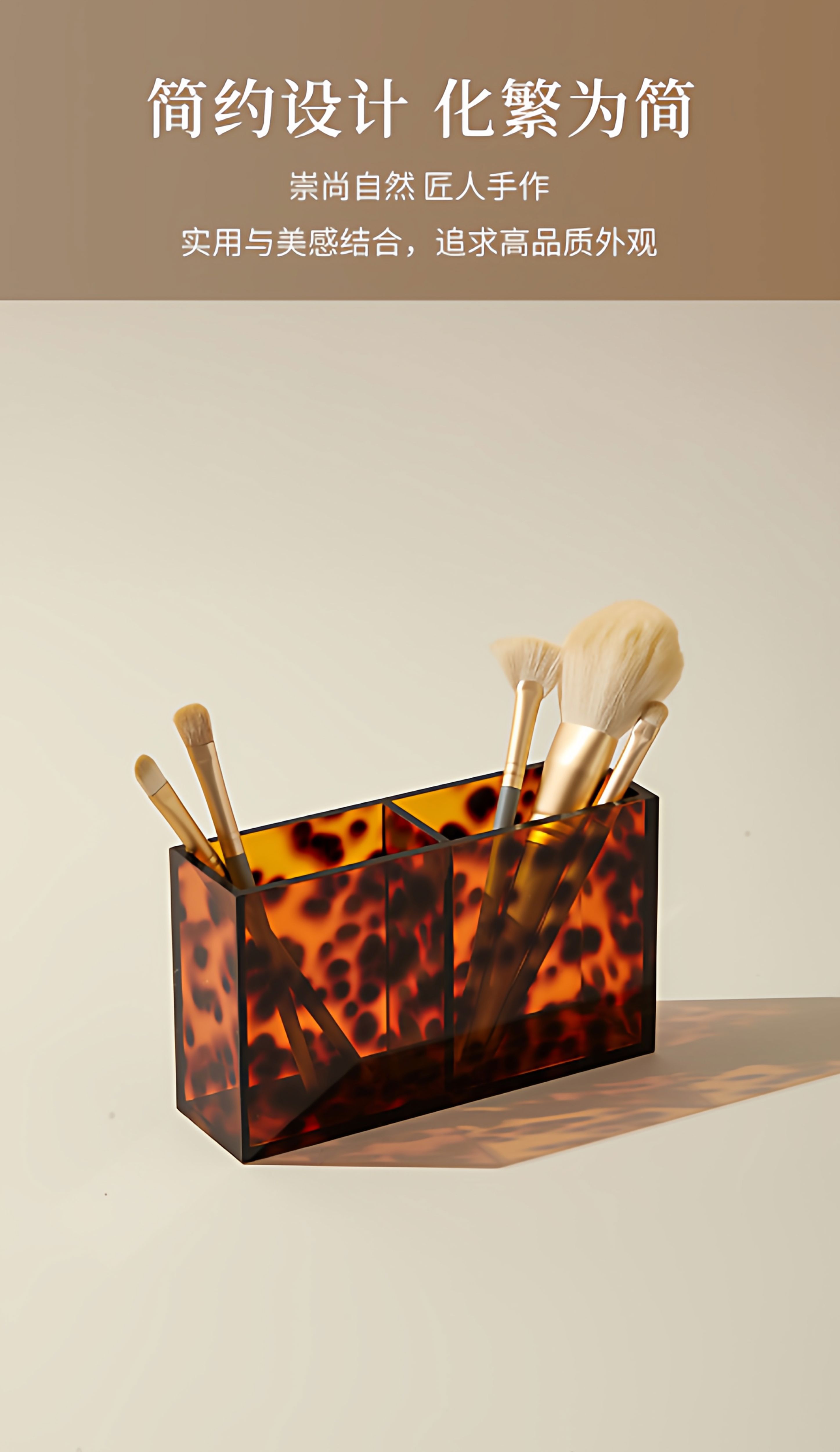 Yusenyi LQ tortoiseshell color acrylic makeup brush storage box dressing table cosmetics comb storage box desktop miscellaneous pen holder one grid