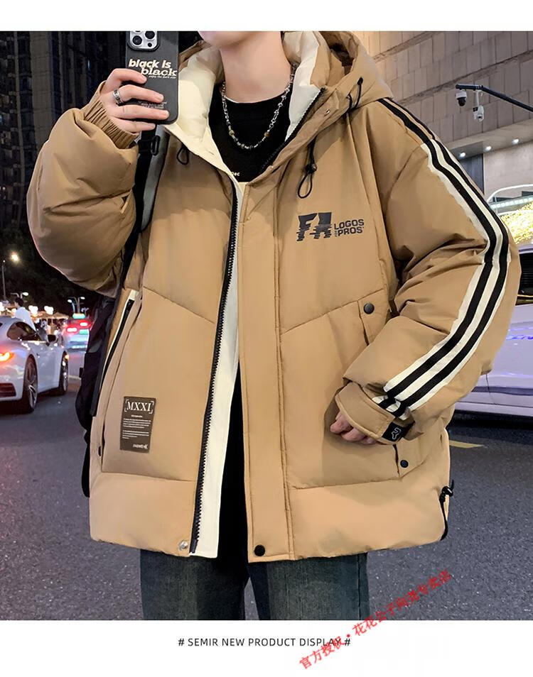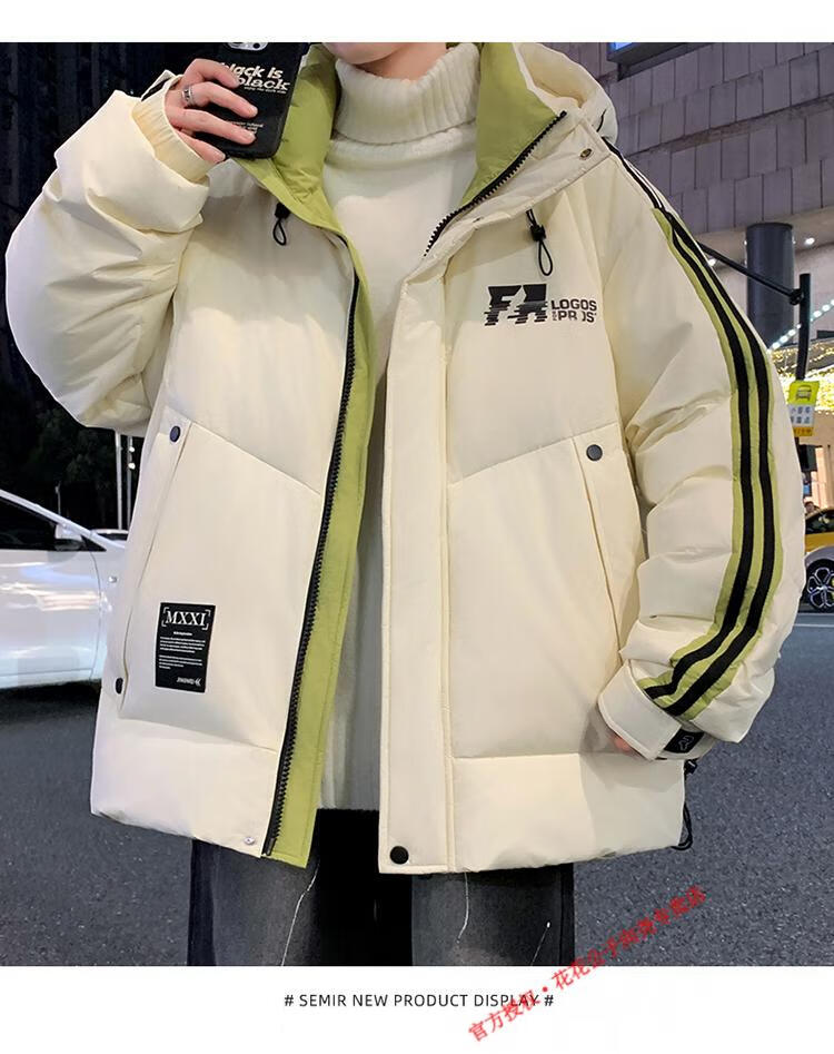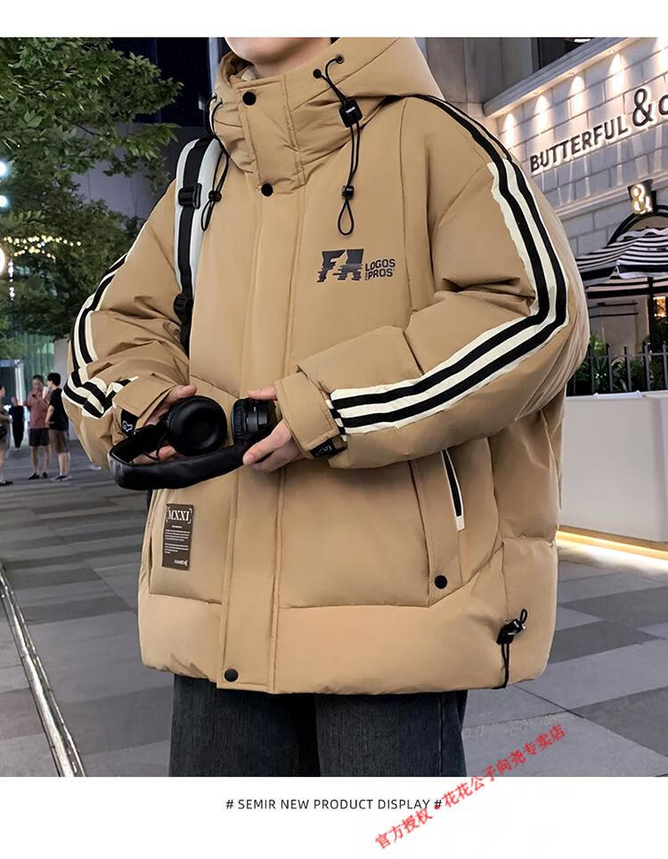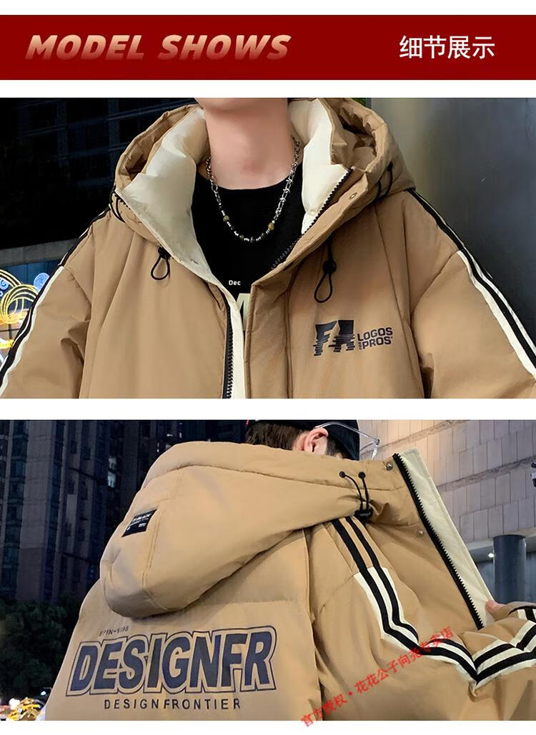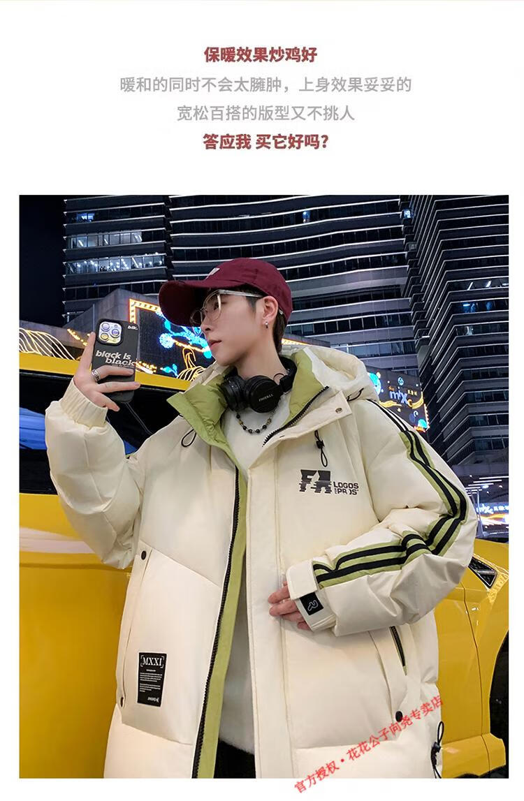 Playboy (PLAYBOY) Winter Trendy Brand Down Jacket Men's 2025 Thickened Spliced Cotton Jacket Student Hooded Warm Plush Fleece Jacket 767 Beige 3XL