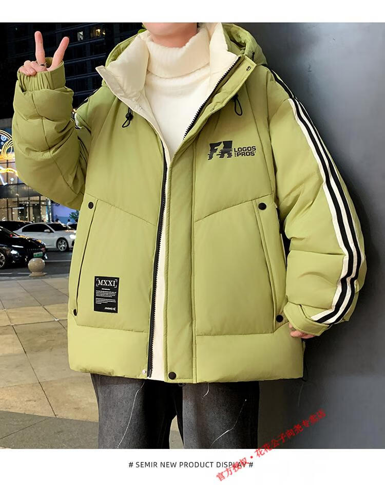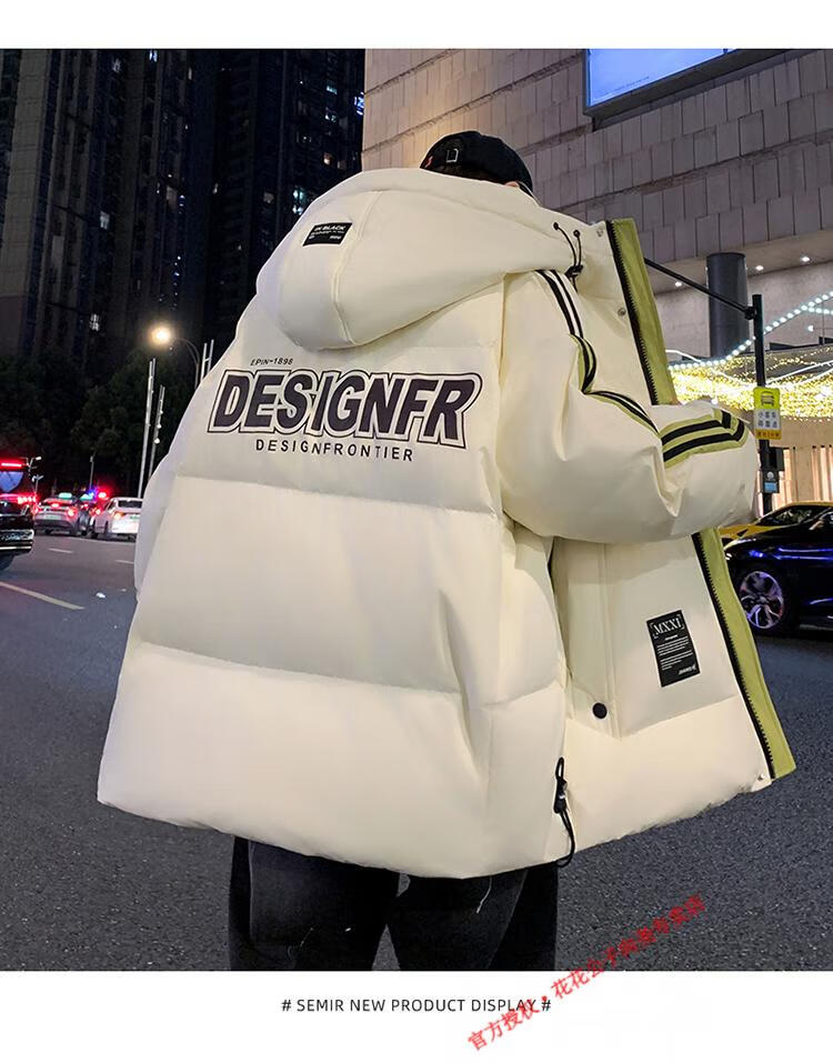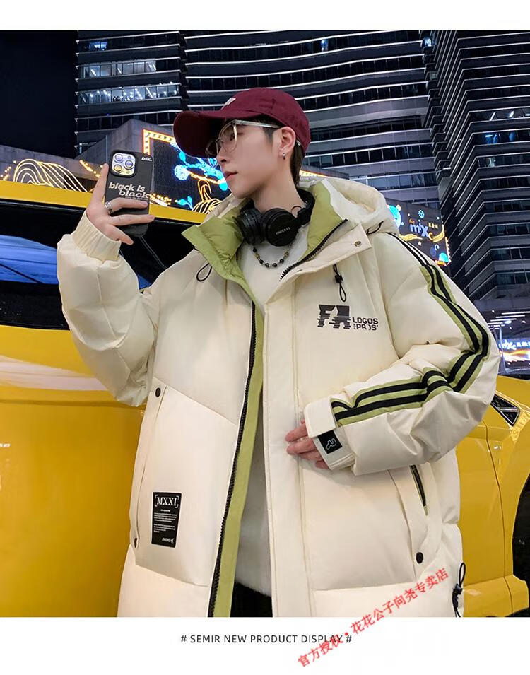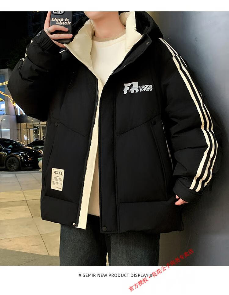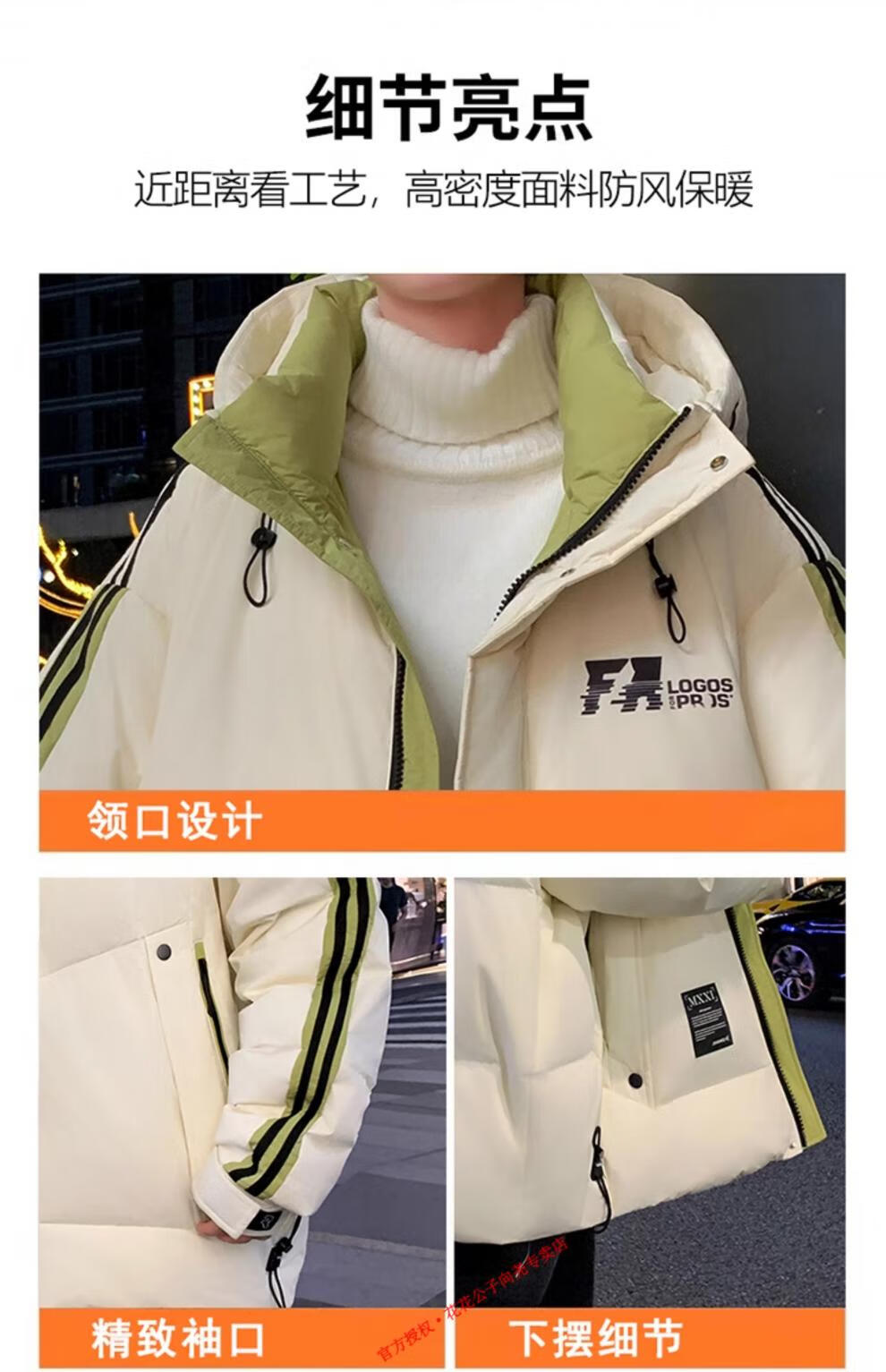Playboy (PLAYBOY) Winter Trendy Brand Down Jacket Men's 2025 Thickened Spliced Cotton Jacket Student Hooded Warm Plush Fleece Jacket 767 Beige 3XL