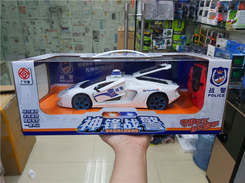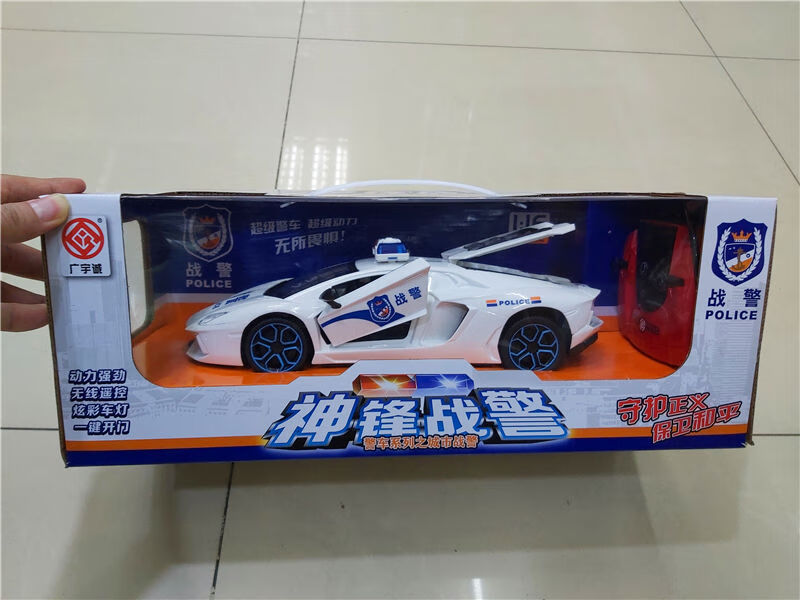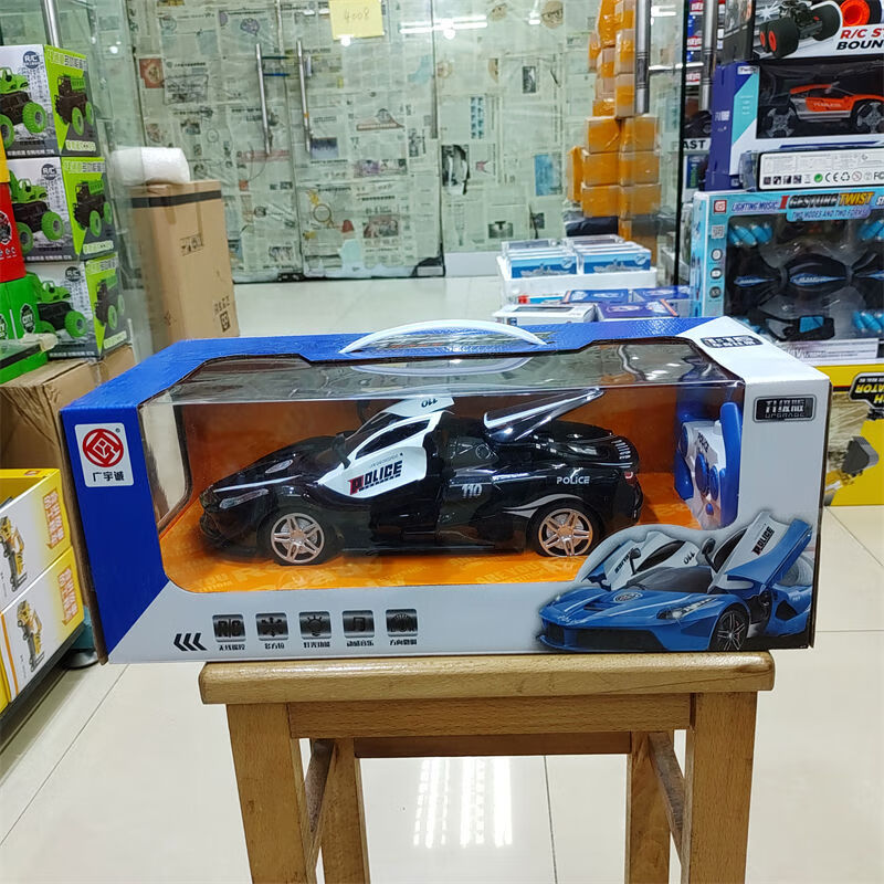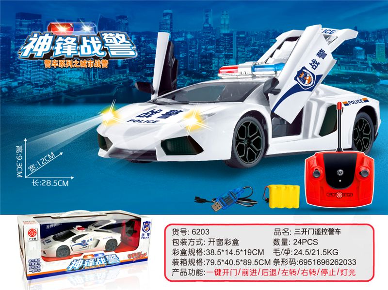 Toothless Warrior Wireless Remote Control Police Car Charging Children's Boy Electric Toy Car Model Racing One 26CM Open Door Rambo Racing-Blue 6234