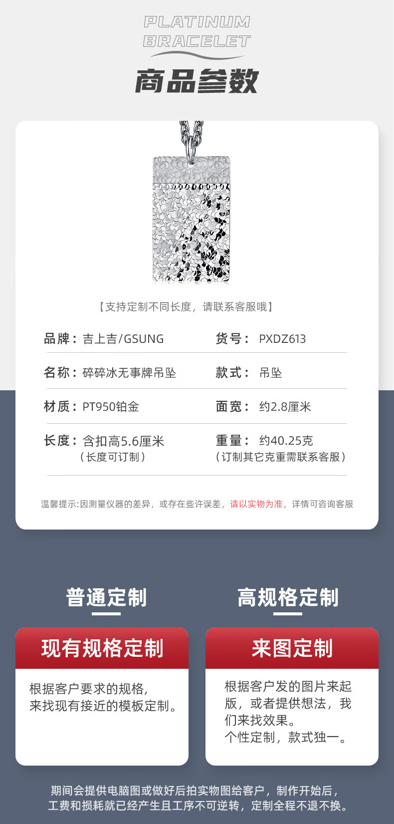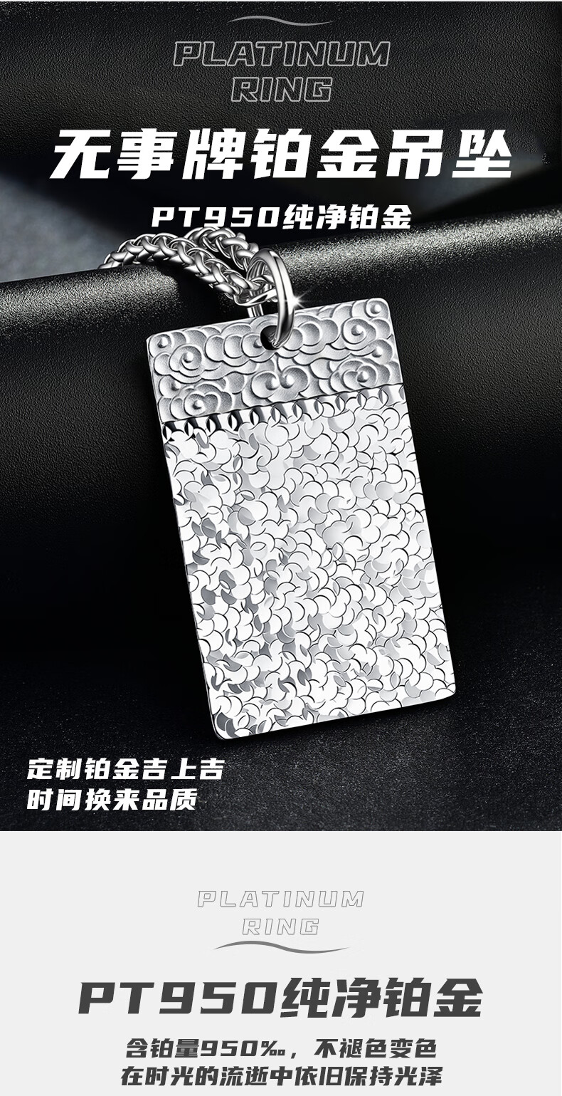 GsunG platinum PT950 broken ice peace brand pendant for men and women, pure platinum solid peace tag, can be customized as a gift. Priced by gram, please contact customer service before bidding.