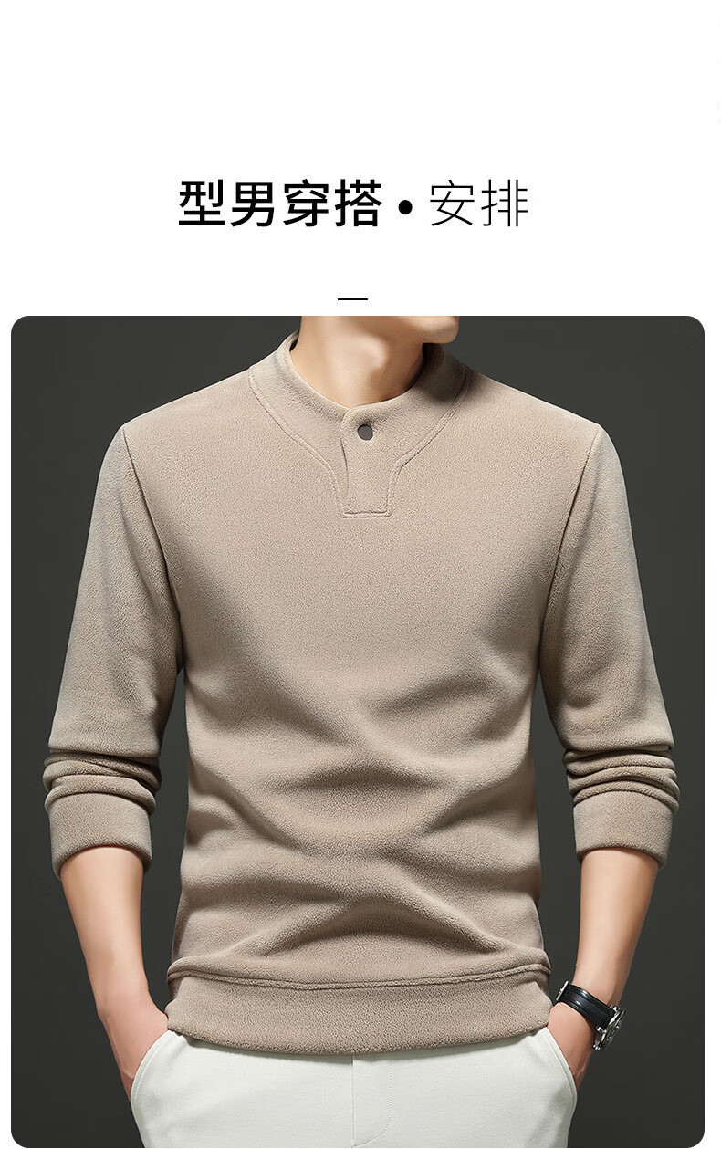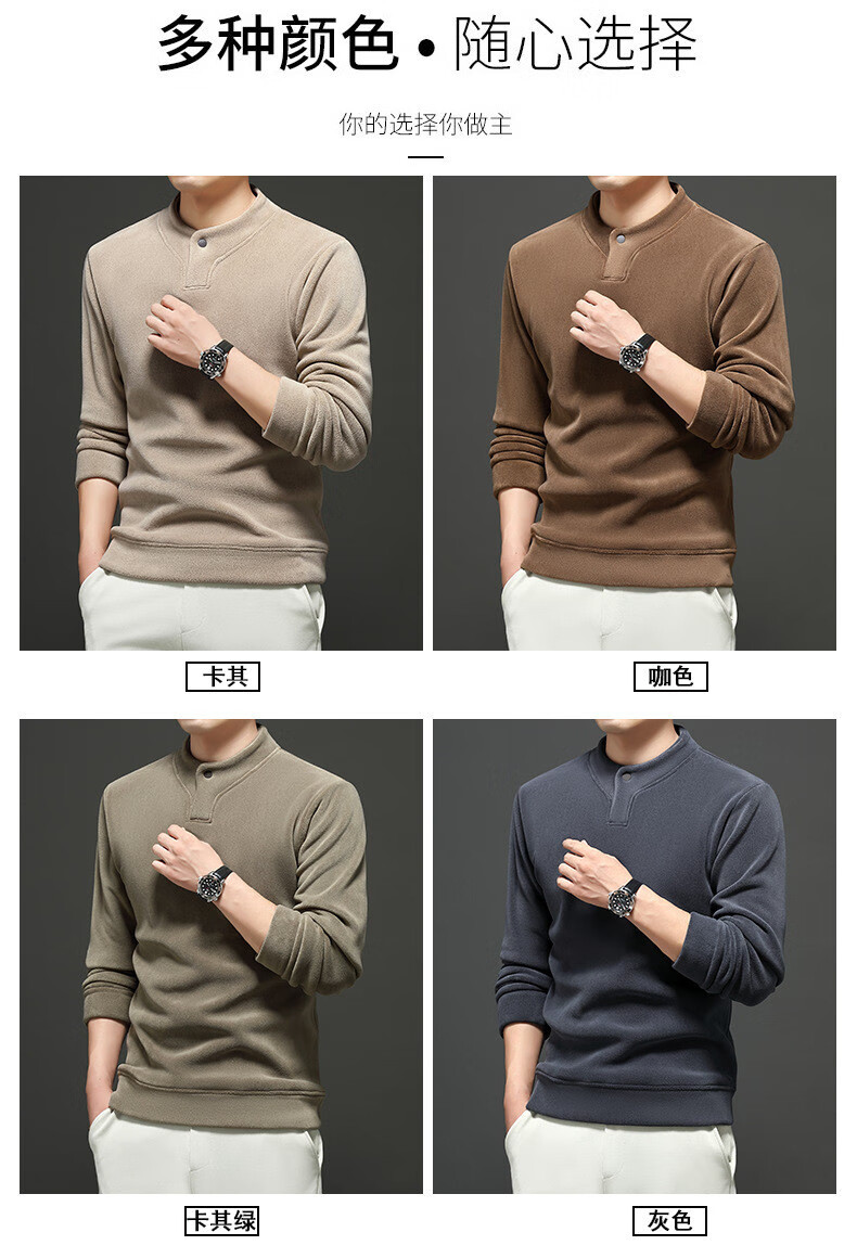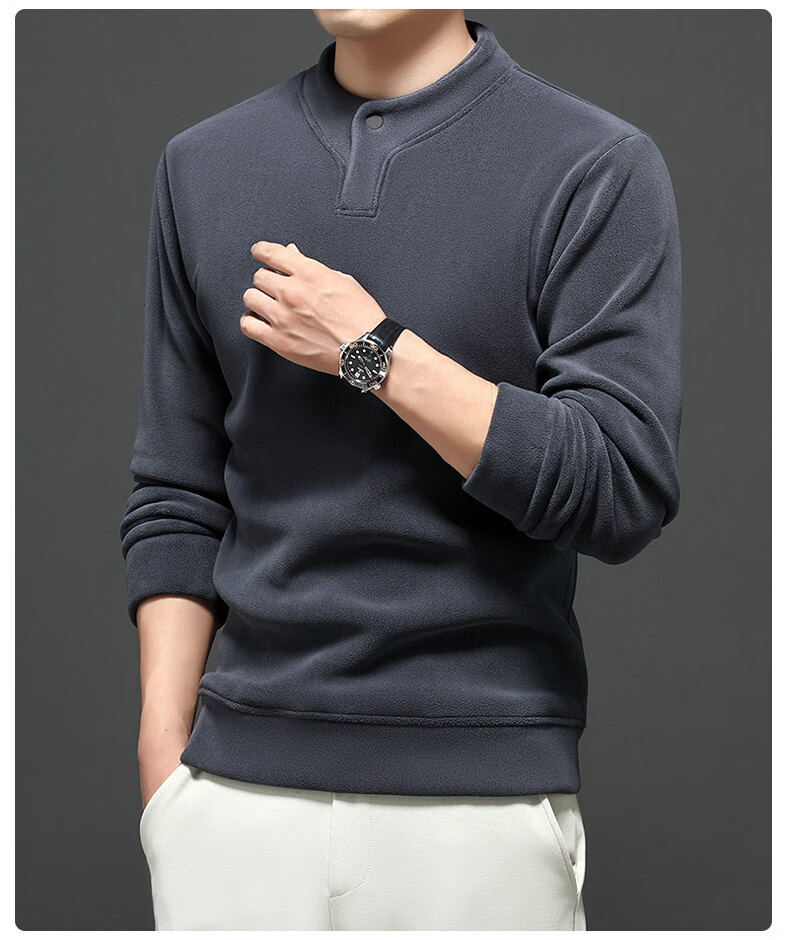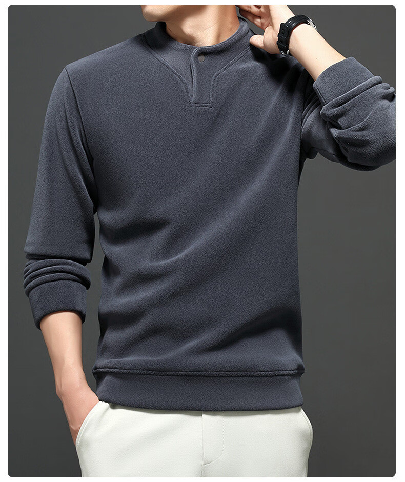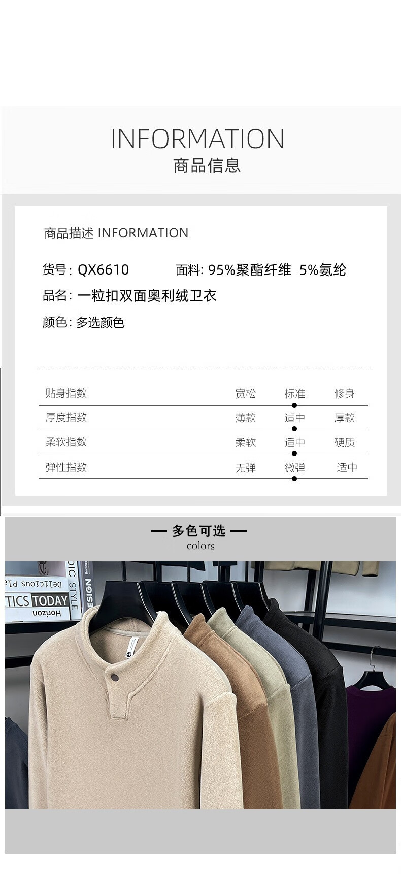 AX one-button double-sided Austrian velvet sweatshirt for men in autumn and winter new style Henry collar plus velvet thickened outer wear inner top Gray M (recommended 95-110Jin Jin equals 0.5kg)