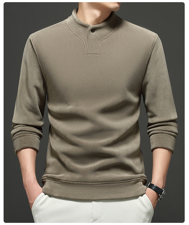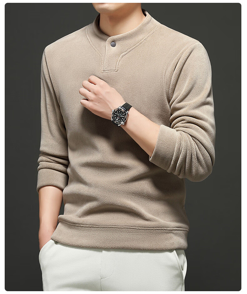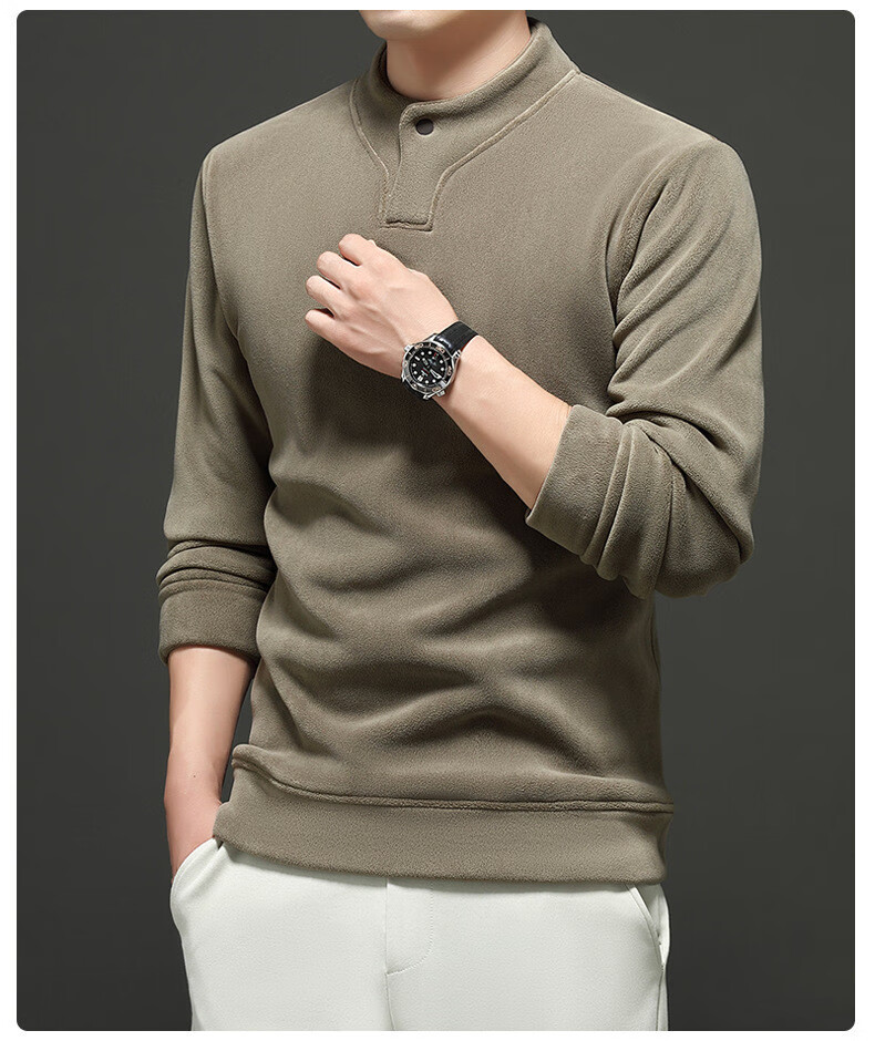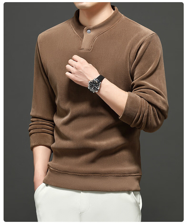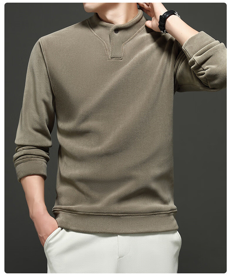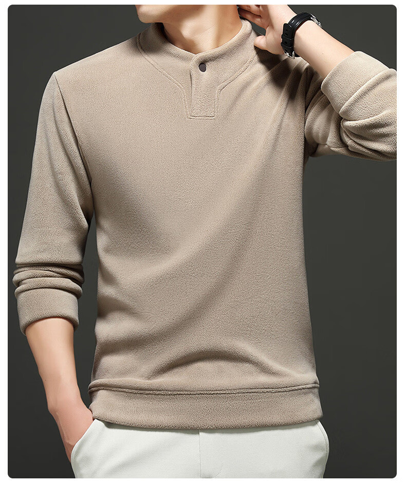 AX one-button double-sided Austrian velvet sweatshirt for men in autumn and winter new style Henry collar plus velvet thickened outer wear inner top Gray M (recommended 95-110Jin Jin equals 0.5kg)