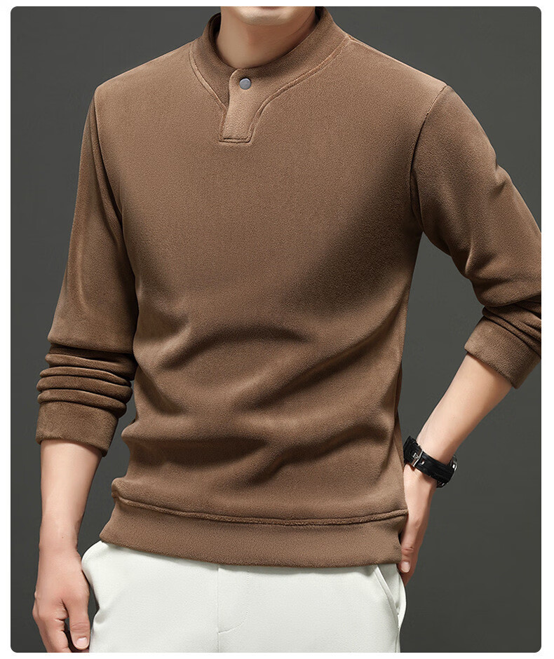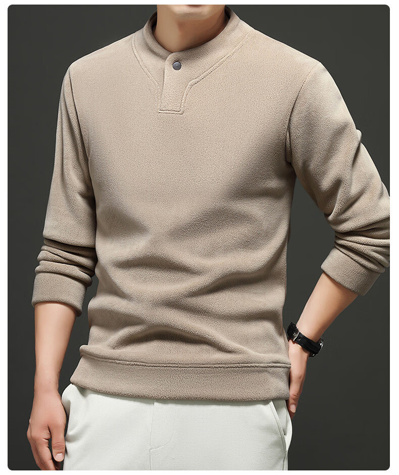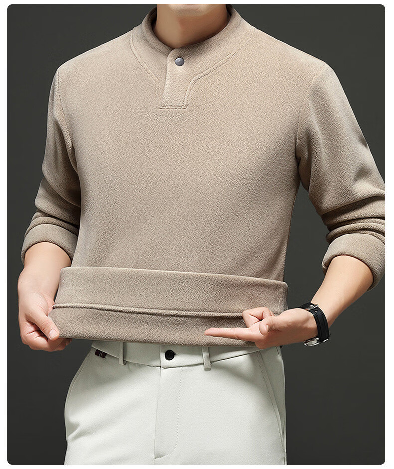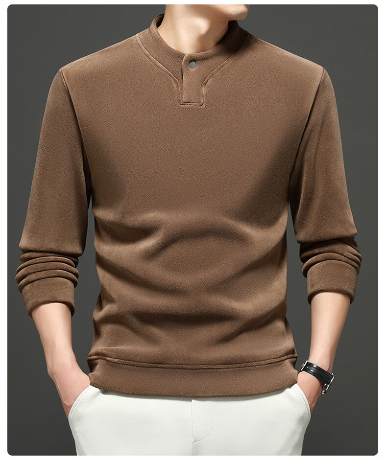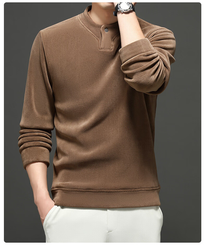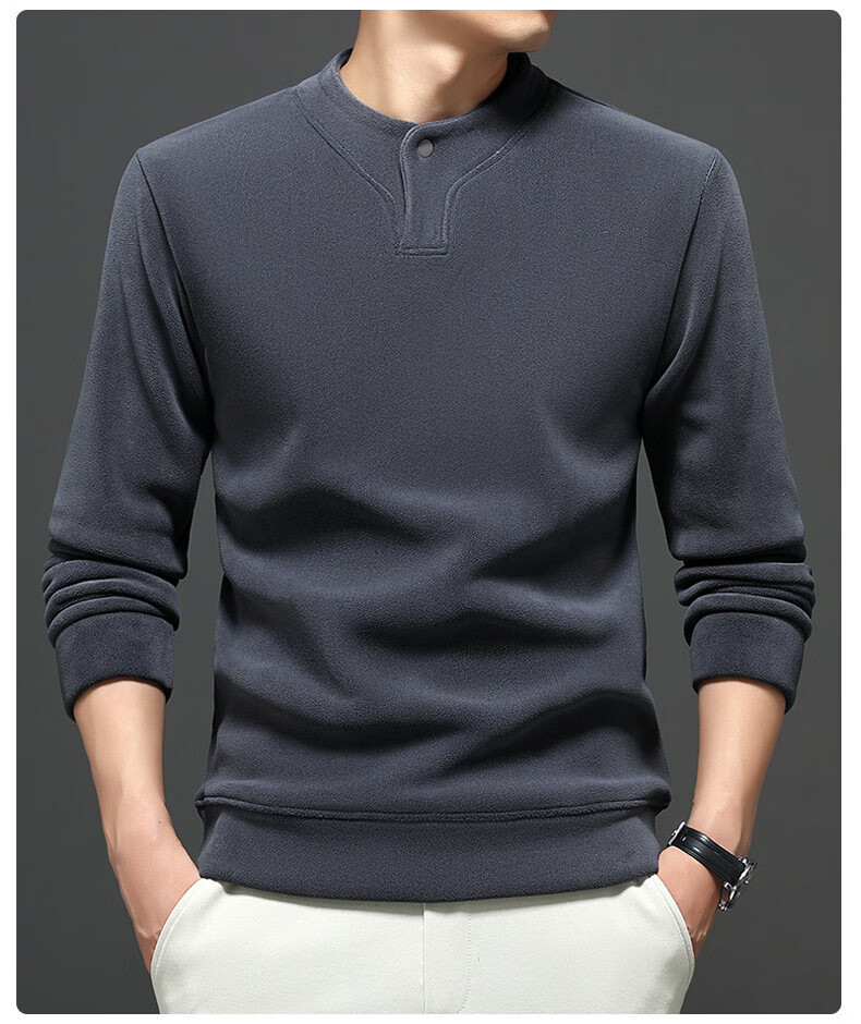 AX one-button double-sided Austrian velvet sweatshirt for men in autumn and winter new style Henry collar plus velvet thickened outer wear inner top Gray M (recommended 95-110Jin Jin equals 0.5kg)