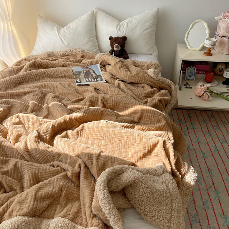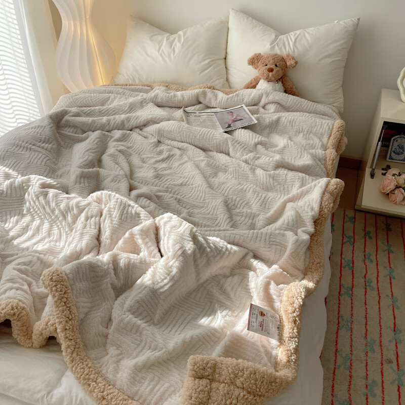 Pick up cat ins style rabbit plush blanket student dormitory milk velvet air conditioning nap small blanket office shawl caramel coffee jacquard rabbit plush soft and skin-friendly not 200x230cm scene sofa bed blanket
