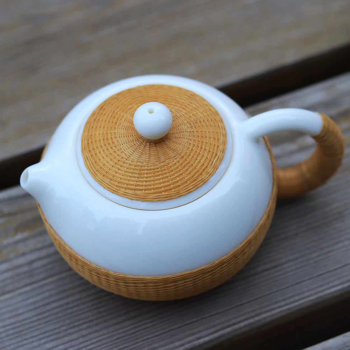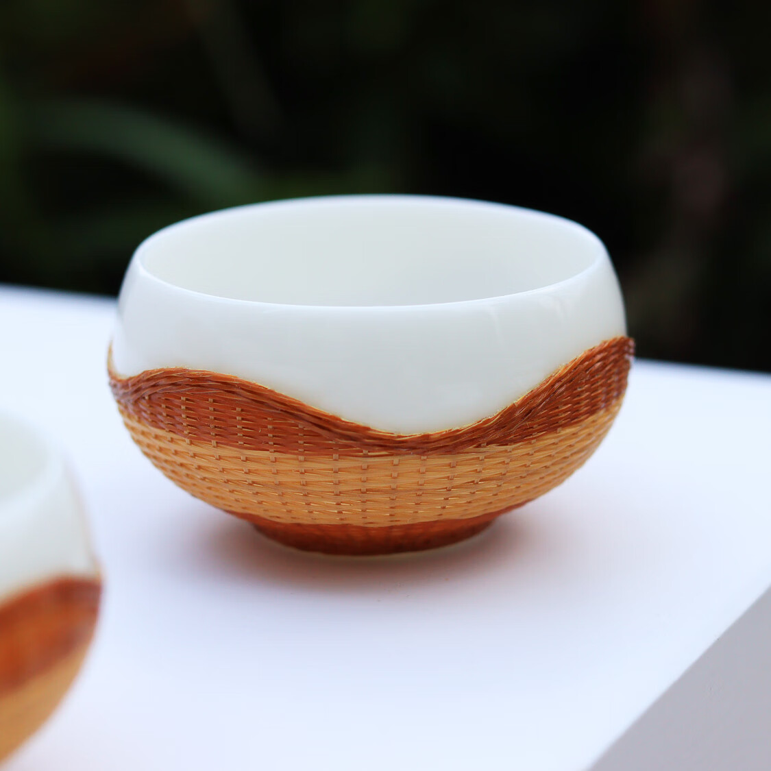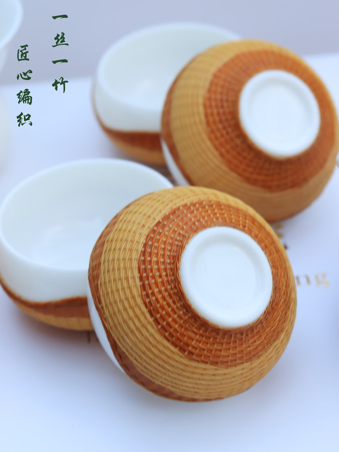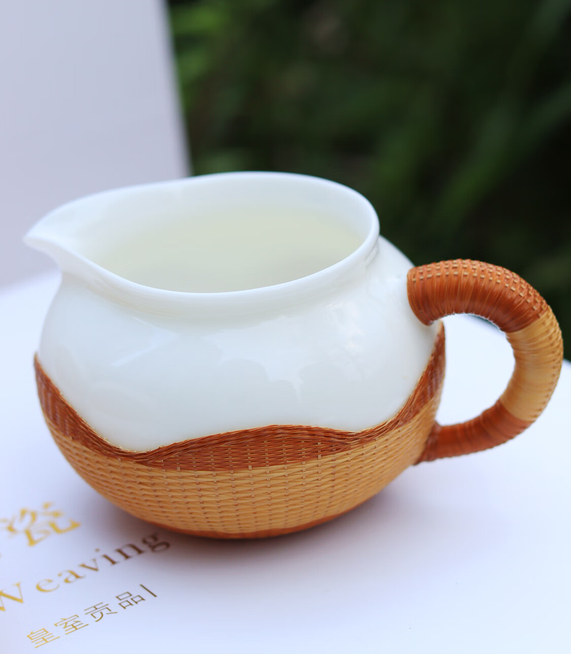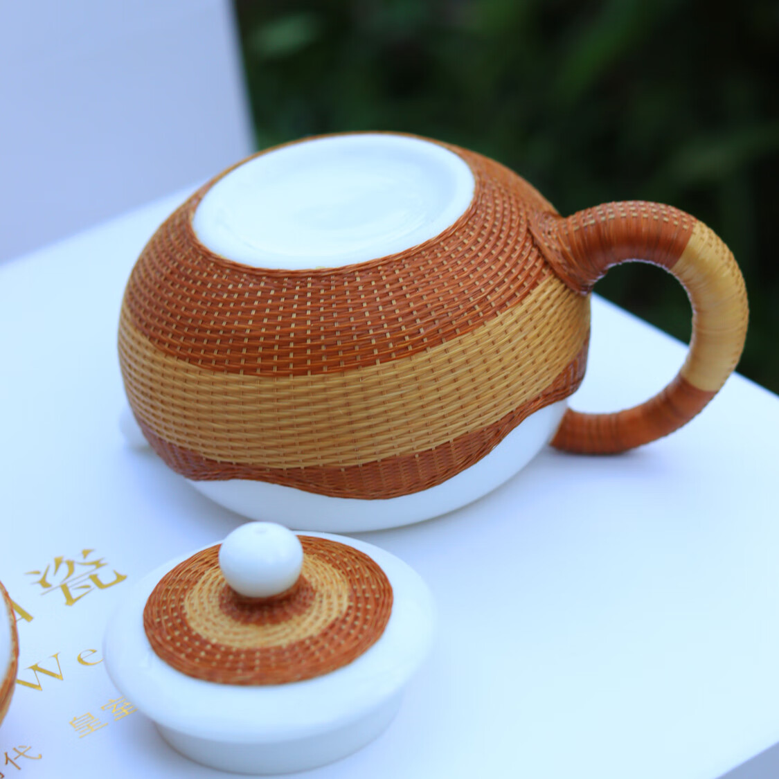 Sichuan Province intangible cultural heritage handmade porcelain bamboo tea set bamboo thread buckle porcelain Xishi pot silk bamboo cup conference gift for customers two-color mutton fat jade porcelain bamboo tea set eight-piece set